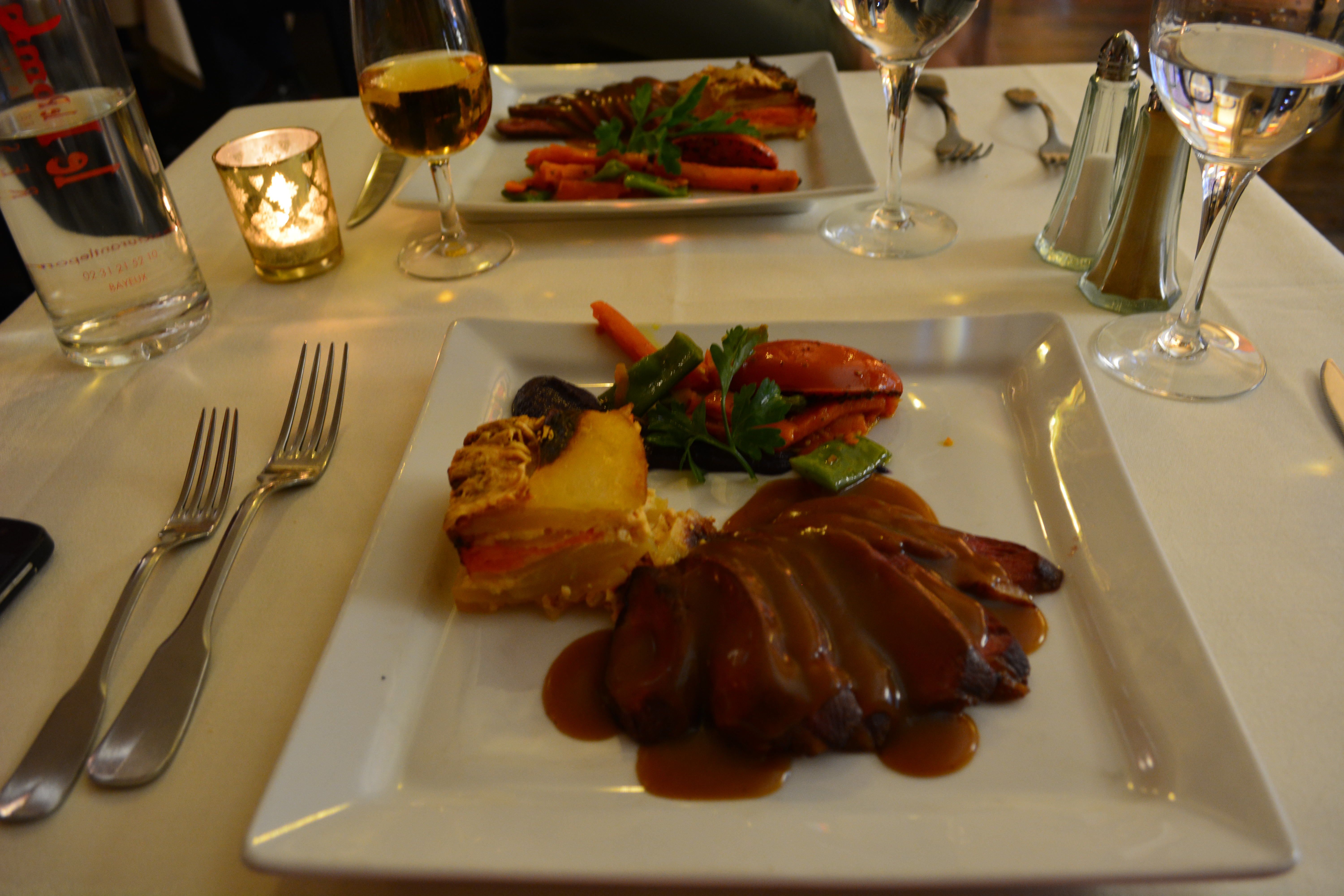 My traveling companion had made dinner reservations at an excellent restaurant in Bayeux, so we headed there. We arrived quite a bit early, so we explored the town cathedral. I found it more intriguing than the Notre Dame of Paris, and not having quite so many people helped a lot.