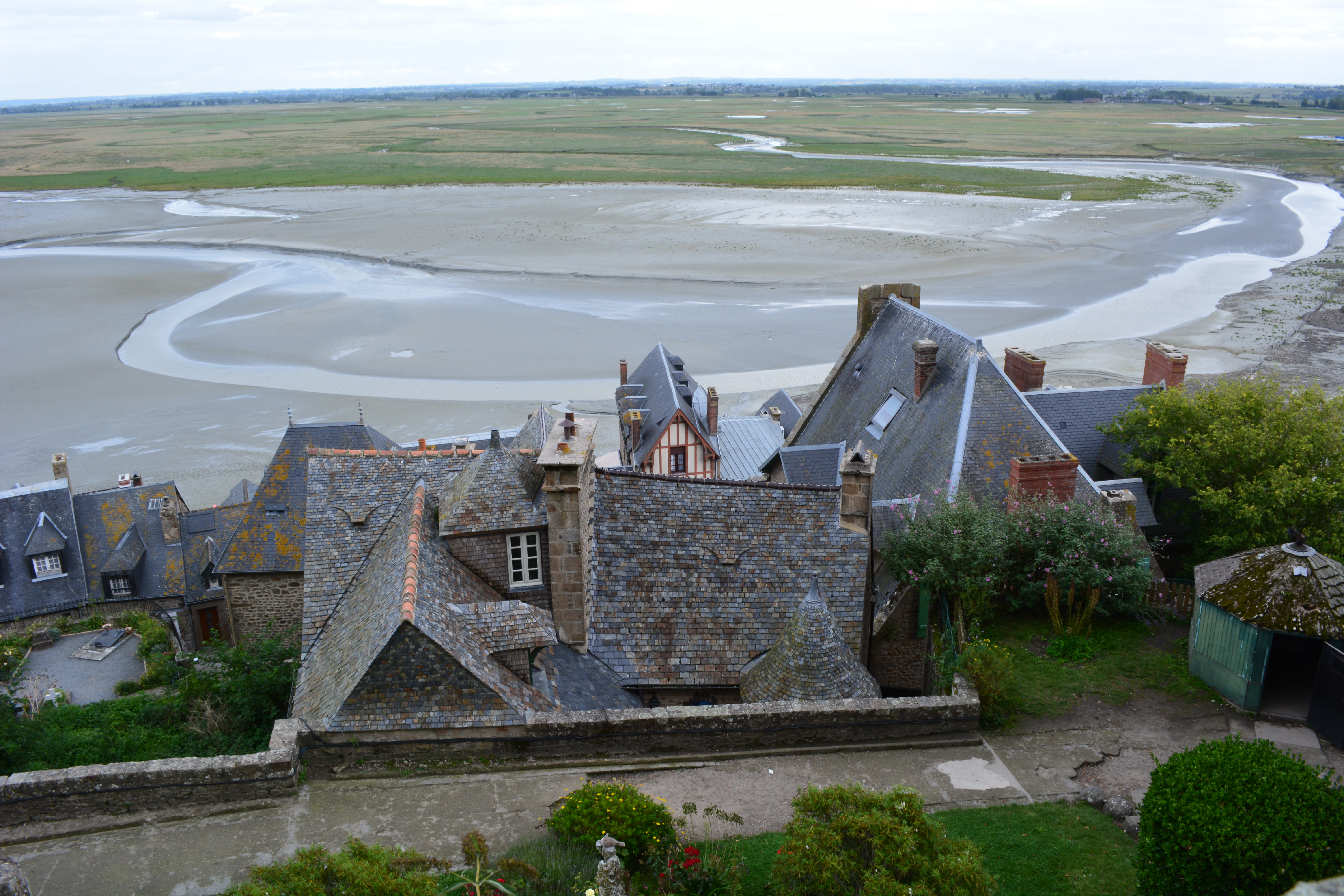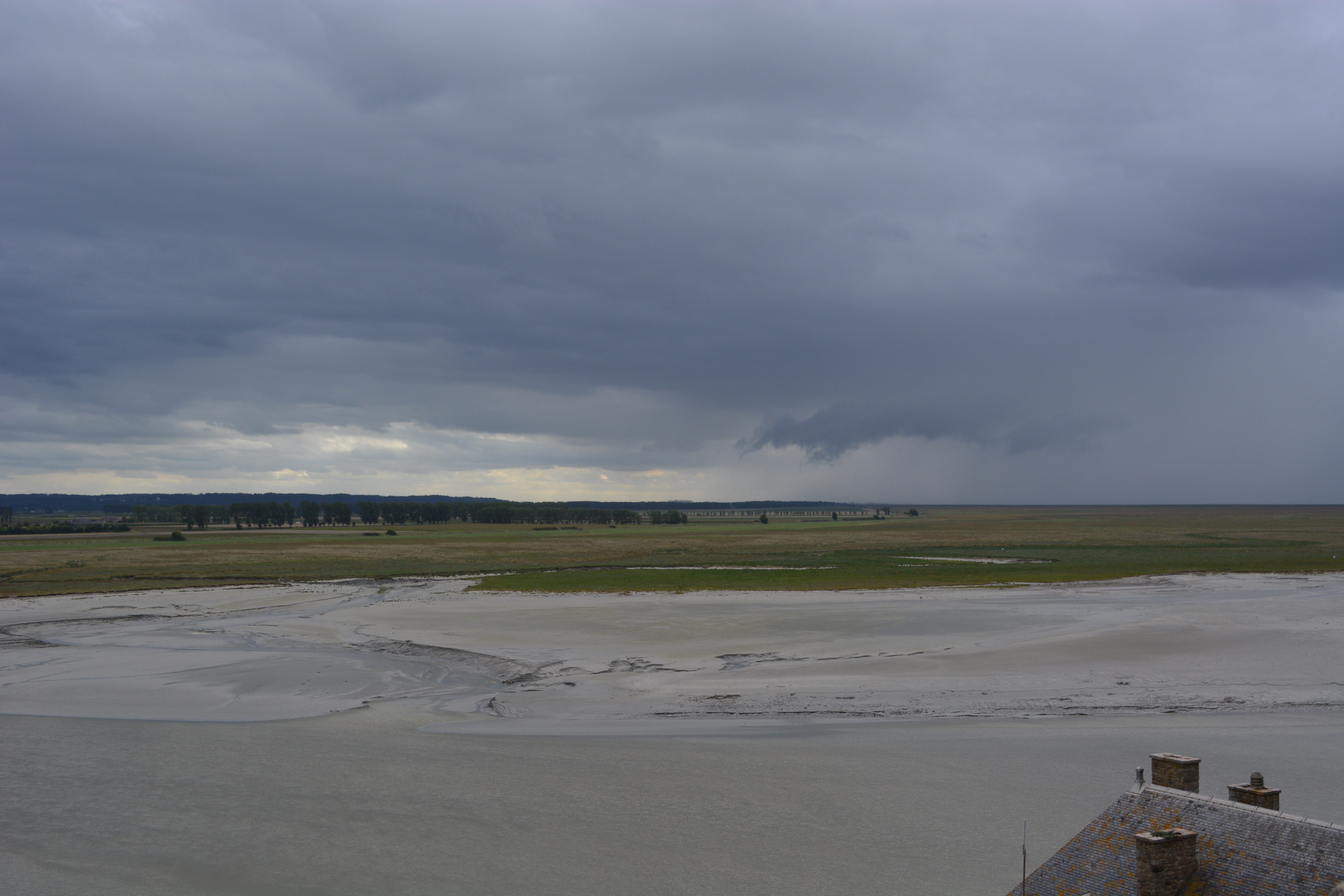 My traveling companion hadn’t entered the abbey on Mont Saint-Michel the last time she was there. After all, the place was so incredibly crowded that it wouldn’t have been worth the time. I figured since we were already there, we might as well do as much as we could do. She decided she would join me, despite not wanting to make the trek up the stairs. Unfortunately we were 5 minutes too late. They had just stopped letting people in so they could prepare for the evening light show. I was a bit disappointed, and I think my traveling companion was relieved. Then the wind started to blow, and I looked to the horizon. It looked like a storm was coming.