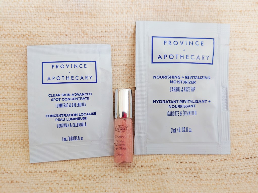 Samples are often underrated. The lip gloss smells so good, which is pretty on par for Pure Anada. They’re not earthy scents. They’re much more fruity, typical “girly” scents. I can’t say much about the other samples as I don’t want to open them yet.