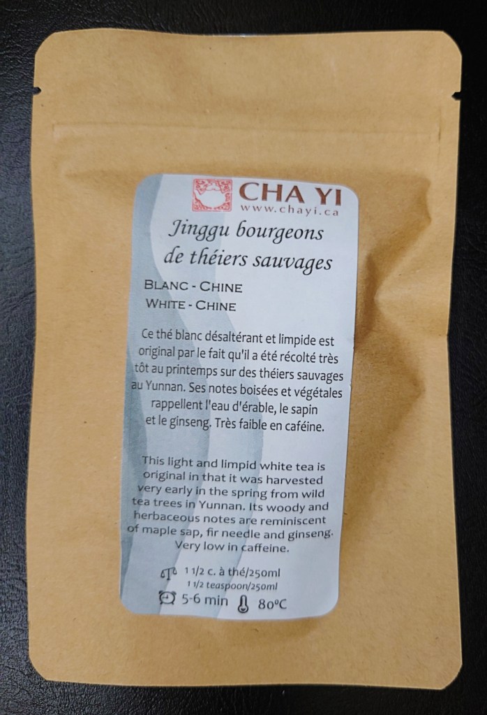 I think the translation is wild tea tree buds from Jinggu. I’m not very familiar with white teas, but the flavour profile looks interesting. Maple sap and fir needle? Fascinating.