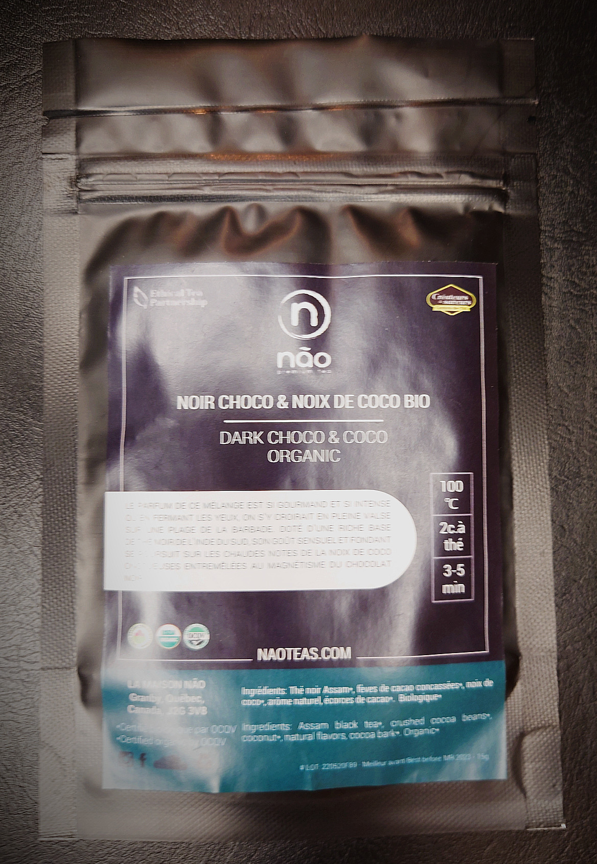 How cool is this. Dark chocolate and coconut!? Sounds delicious as a dessert, but how about as a tea?