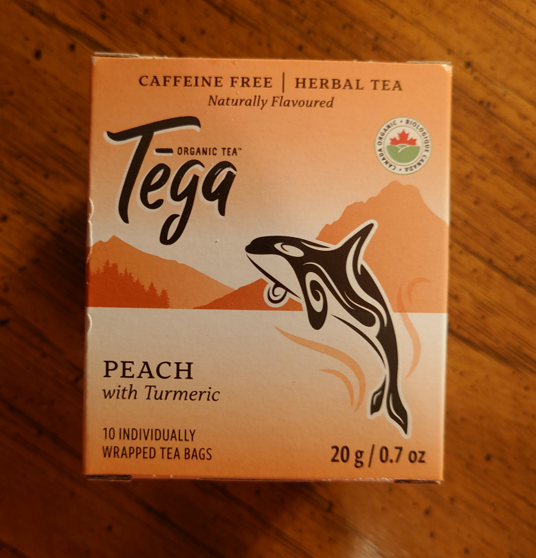 Why the orca on the box, when orcas have nothing to do with peach or turmeric? Tega is “…bringing awareness to the plight of endangered Southern resident orcas in the Pacific Northwest and donating 10% of net profits to Georgia Strait Alliance to support orca conservation.” Cool.
