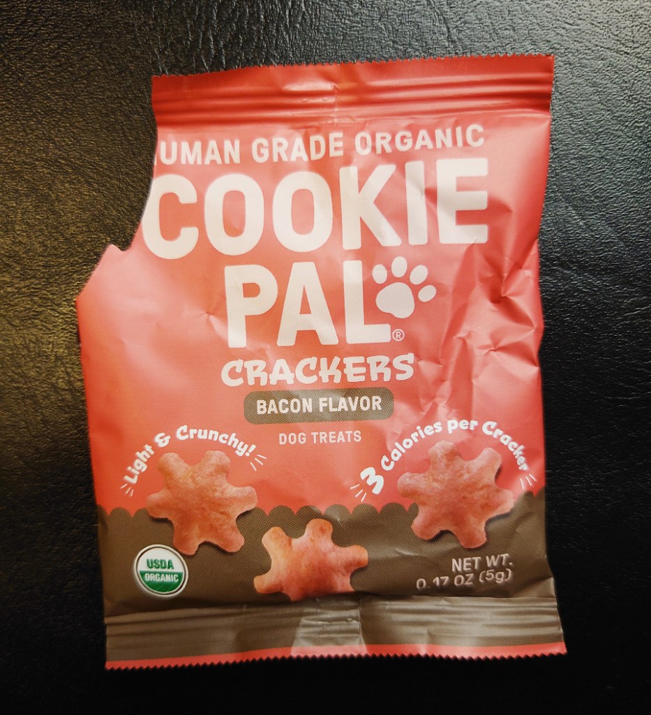 This is another sample. I think the problem with these crackers, is that they are crackers. Crackers break quite easily. I had to dump out most of this tiny pack on the floor. Click here for more information from Cookie Pal. All my dogs enjoyed these treats.
