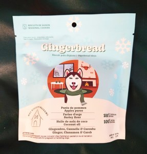 These treats seem to be pretty decent when it comes to ingredients: apple puree, barley flour, coconut oil, and seasoning (ginger, cinnamon, carob). They smell so good, I’d like to eat one. I won’t. Too expensive.