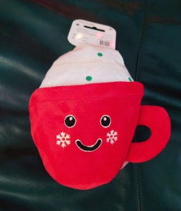 This cup of hot cocoa is a decent sized toy. It’s got a handle that will likely get ripped off quickly. The “whipped cream” is crinkly, and the mug contains a squeaker. This was the bonus toy in this month’s box. Get your own from their site, currently on sale for $11.99.