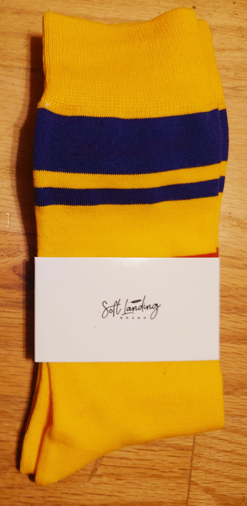 This month features a pair from Soft Landing, which I can’t find anything about. At least not for the socks. There is a children’s seat company. Either they don’t have a website or Google’s algorithms don’t pick it up. Wouldn’t be the first time!