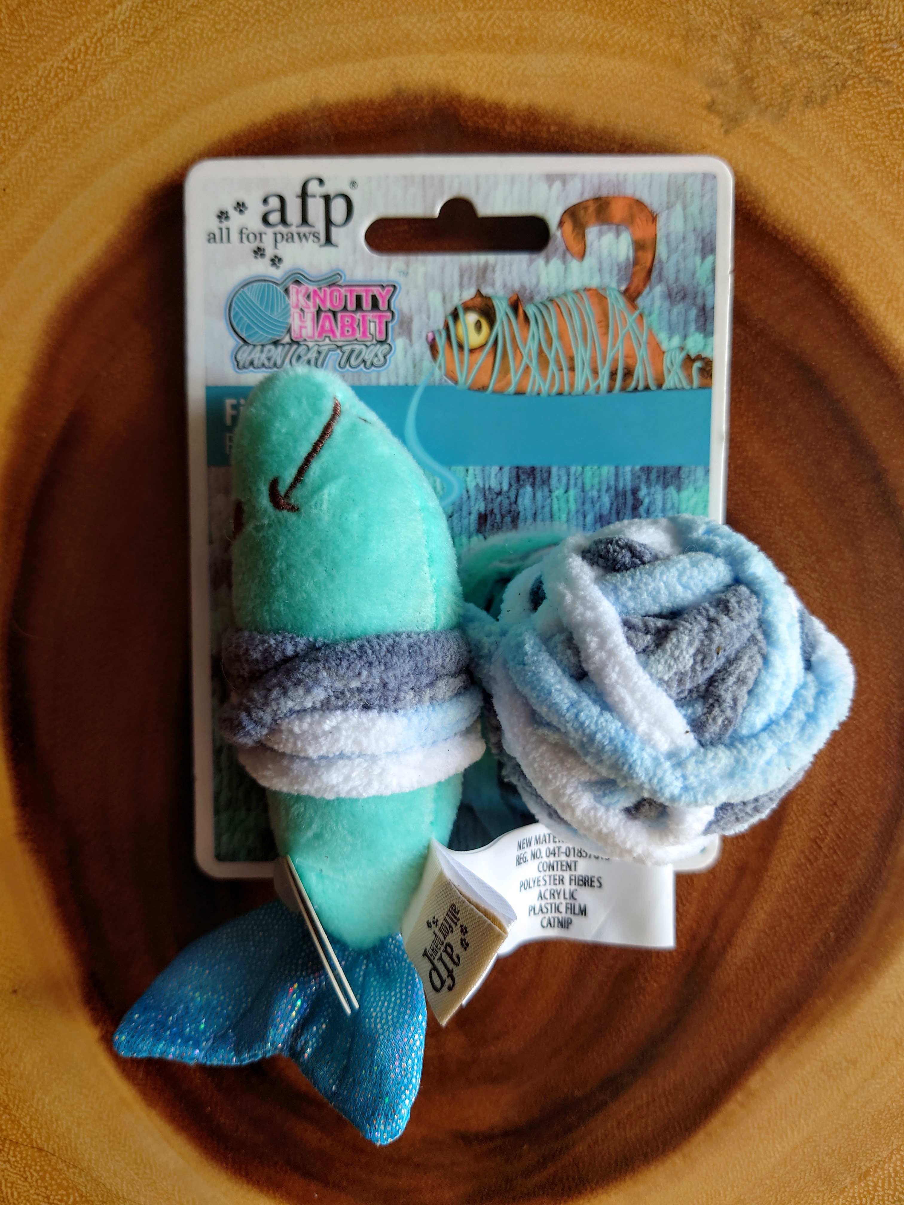 This catnip-filled toy is 3.5″ x 2″ without the top and bottom fins.