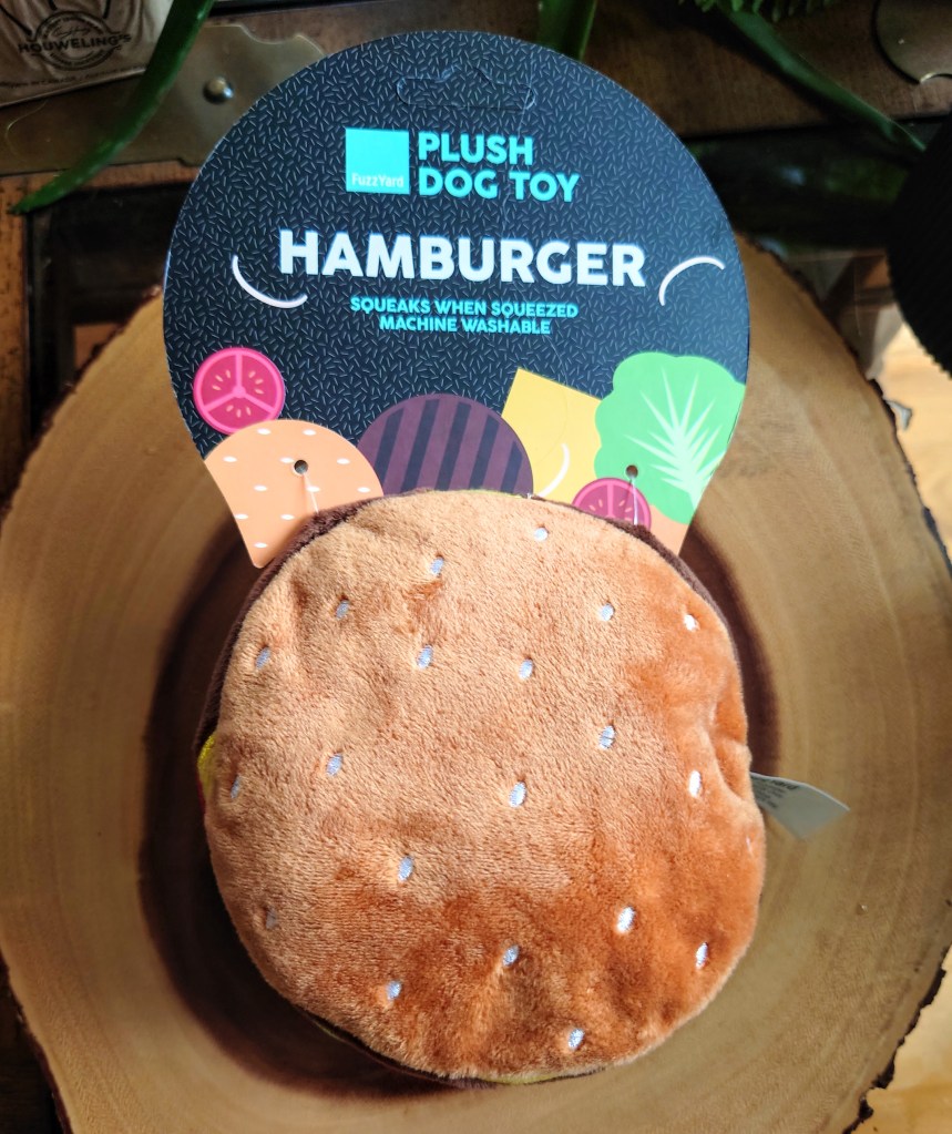 This is a very thick hamburger with a squeaker in the middle. Coco is in love.