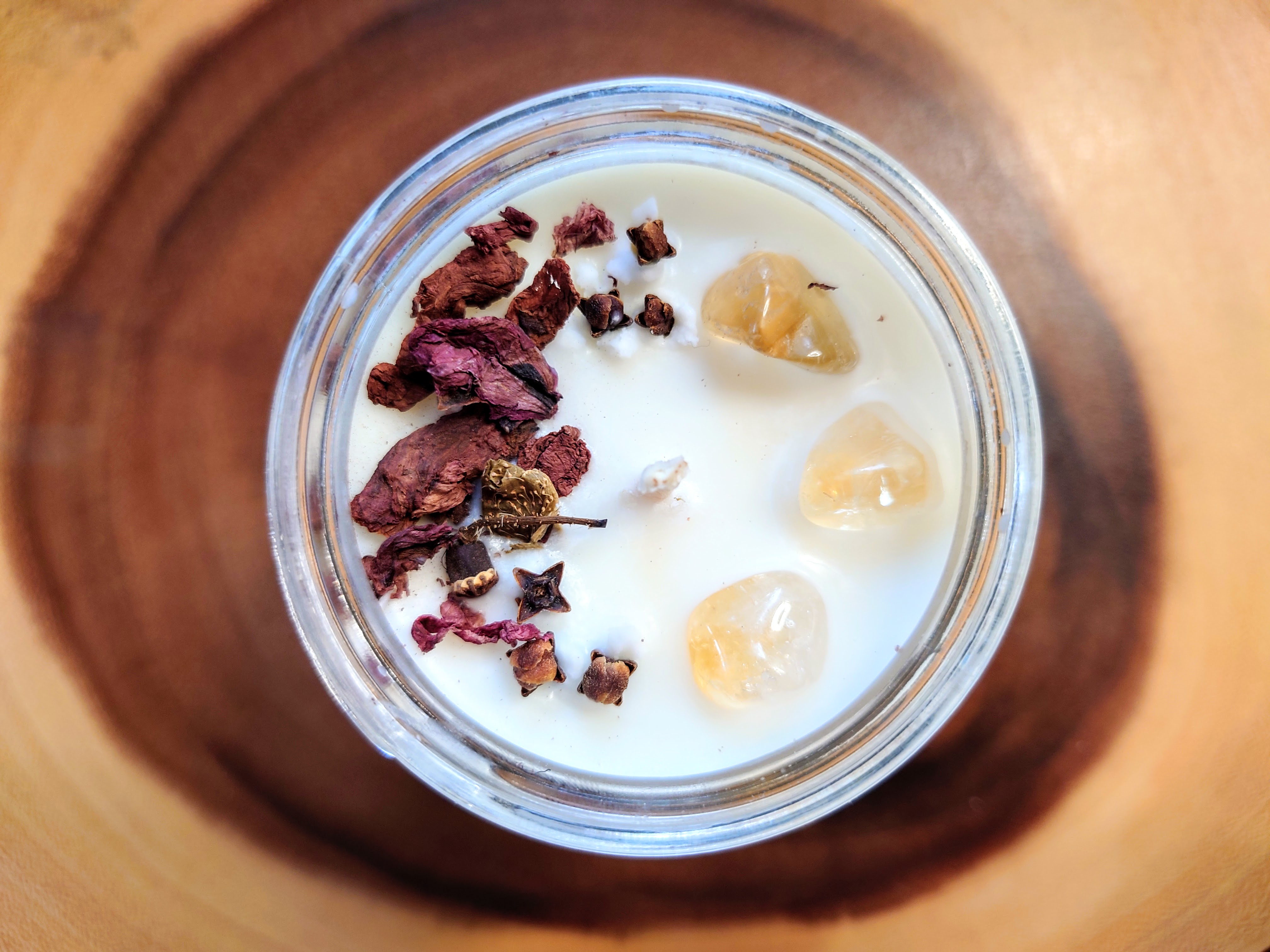 This is a very sweet smelling candle that includes citrine, poppy, and clove.