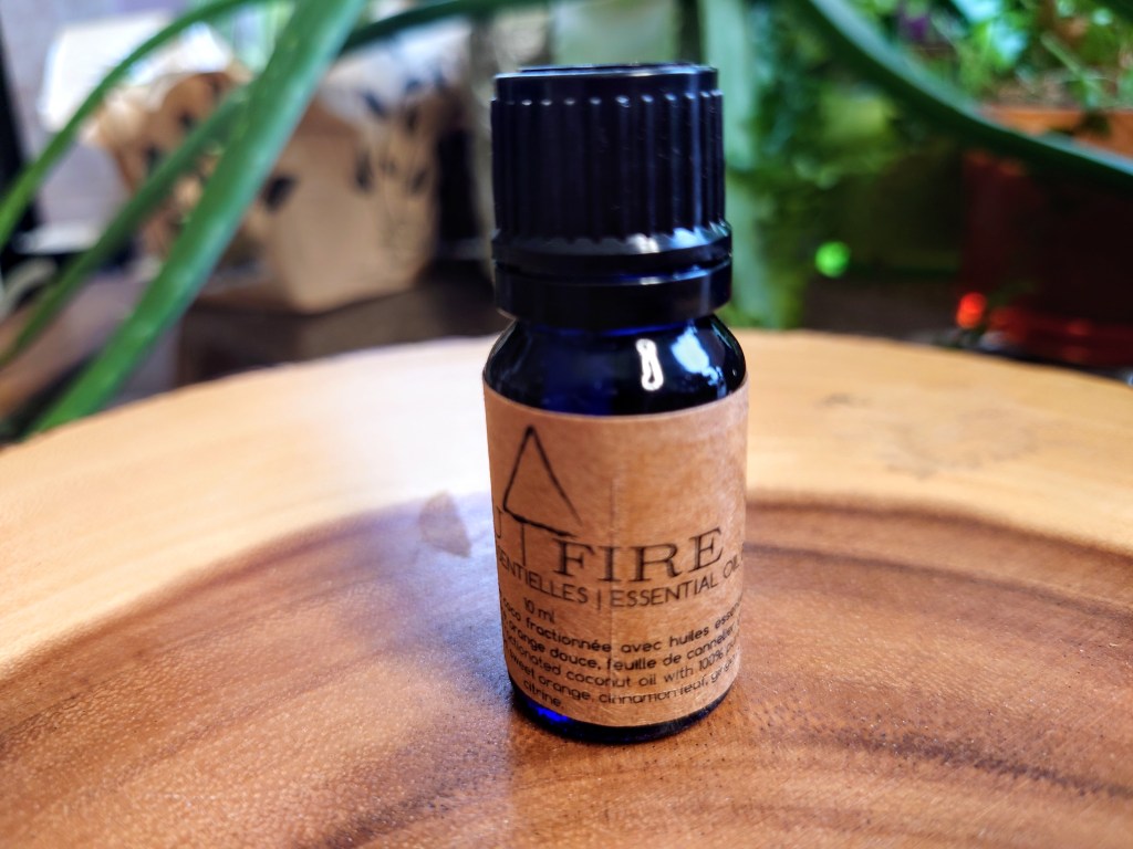 This essential oil blend of frankincense, cedar wood, sweet orange, cinnamon leaf, ginger, clove, and citrine. It smells very nice. Spicy!