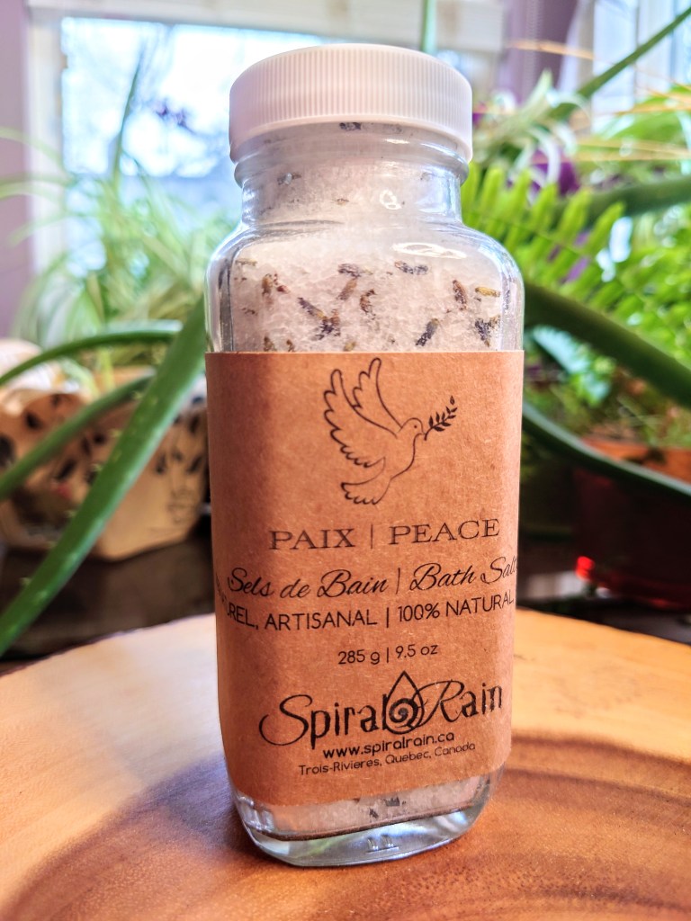 I love the smell of these bath salts. They contain lavender, patchouli, lemon, ylang ylang and howlite.