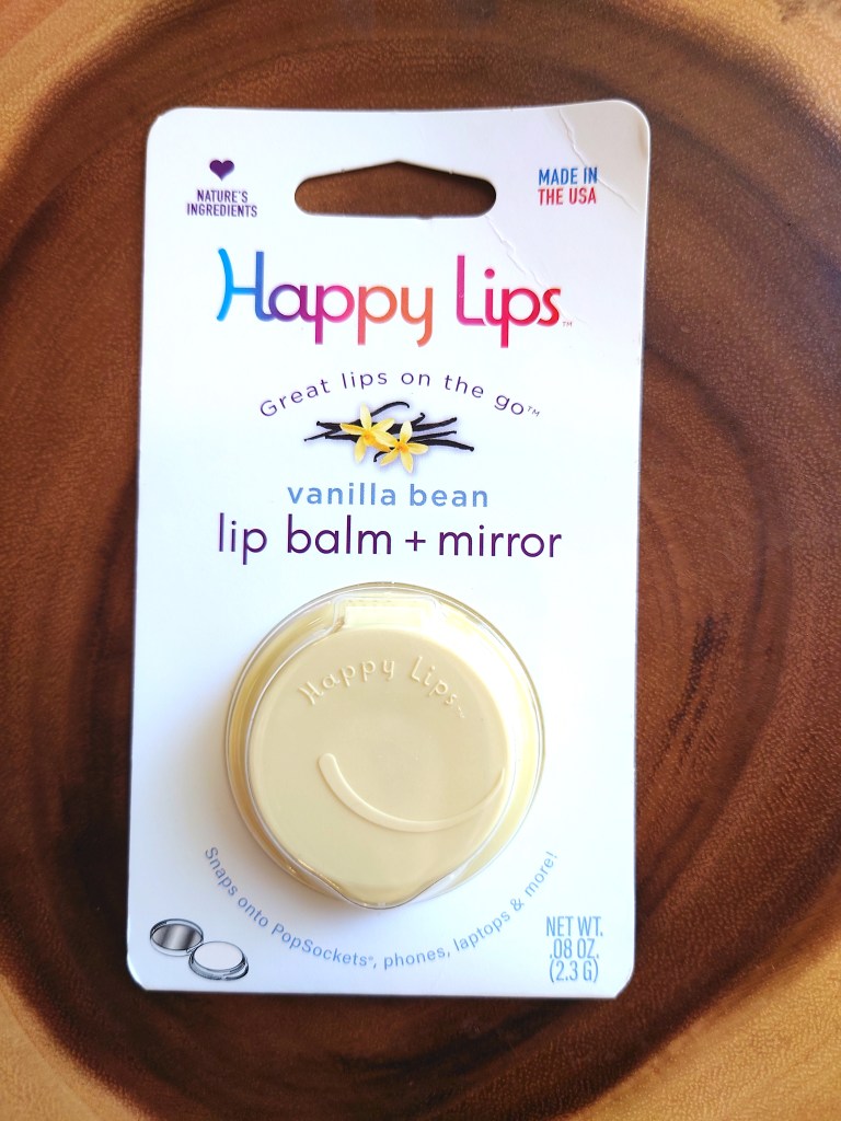 A lip balm, with really not that much lip balm in it, that can attach to a Popsocket. I do not have a Popsocket, but the lip balm is all right. It seems to have decent ingredients and tastes pretty good. The mirror isn’t great, but good enough for checking for stray beard hairs. If you don’t have a Popsocket, then you can use the adapter. It’s a bit gimmicky and not worth $10USD in my mind.