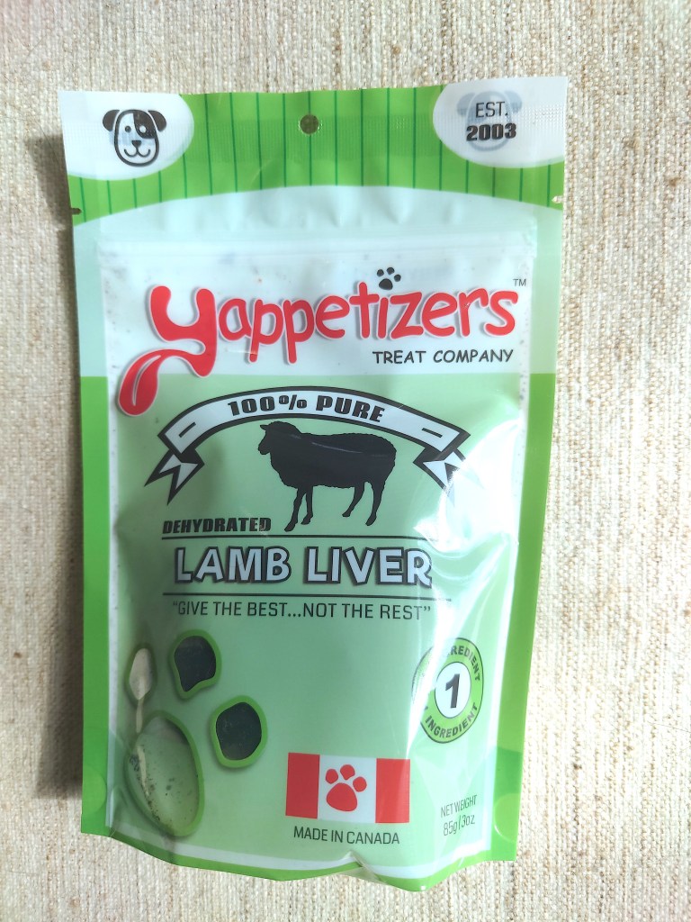 I’m a bit choked that this bag is only 85g when the smallest bag you can buy retail is 100g. In any case, liver is a delight for all the dogs, regardless of the source, and full of nutrients.