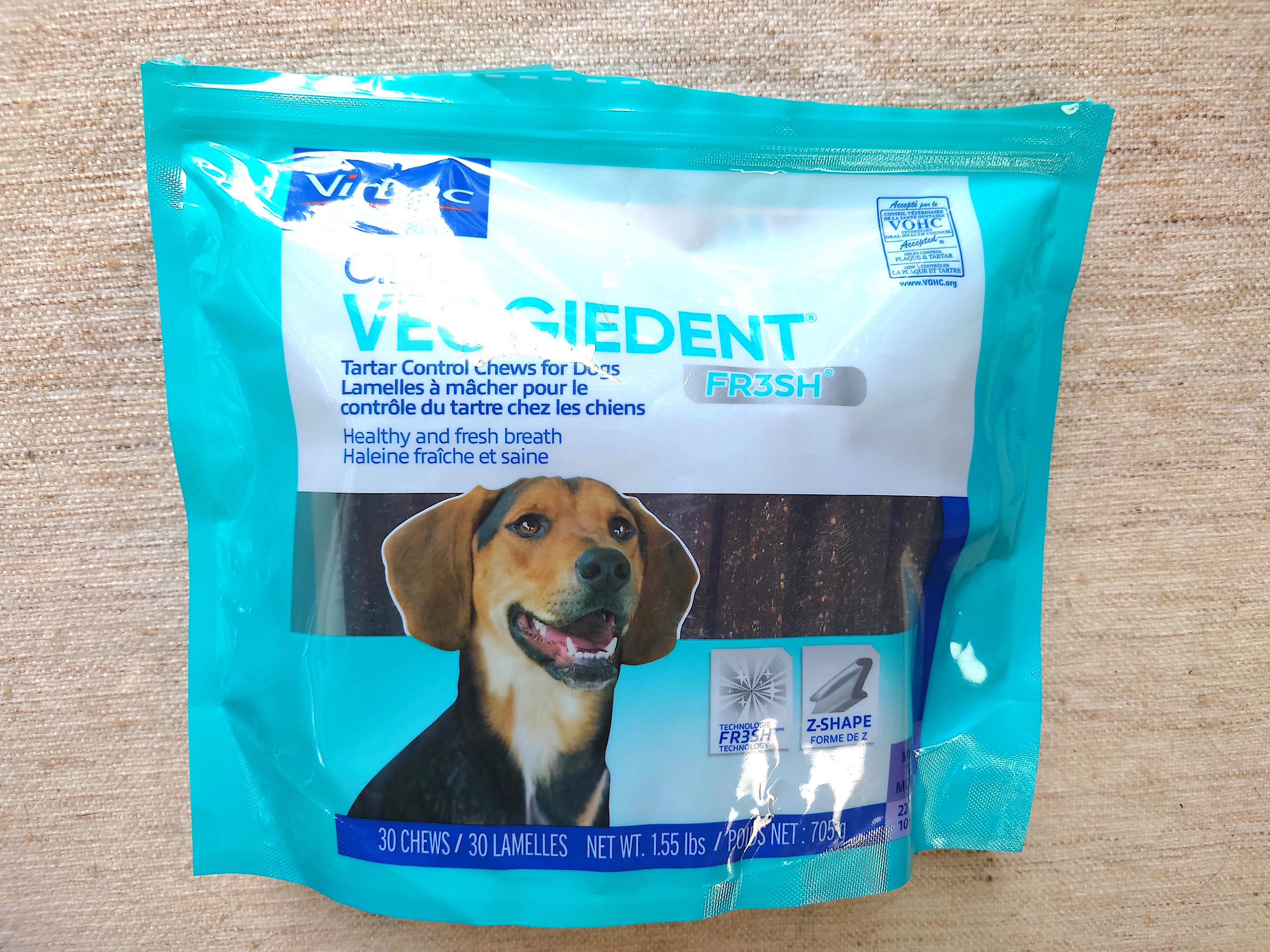 I had never tried these dental chews before. The dogs seem to like them, but they don’t smell very good. This size is appropriate for dogs up to 66lbs, so I gave each of them a chew. I tend to prefer chews that smell nice because it helps the dogs’ breath also smell nice. These chews do not last long. Like maybe a minute or two at most. I wish there was a more cost effective dental chew for dogs. Maybe I’ll figure out how to make one.