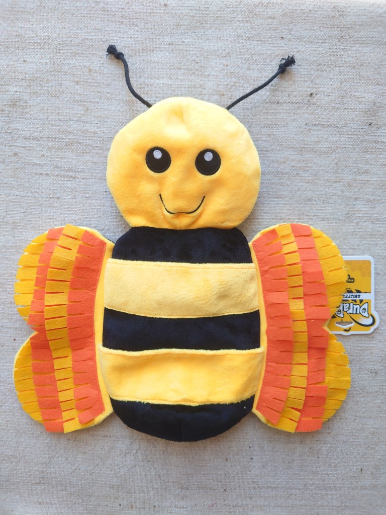 I don’t think I would pay $20 for this, but it sure is cute. The head is crinkly and you can theoretically hide treats in the wings and in the bee’s yellow stripes.