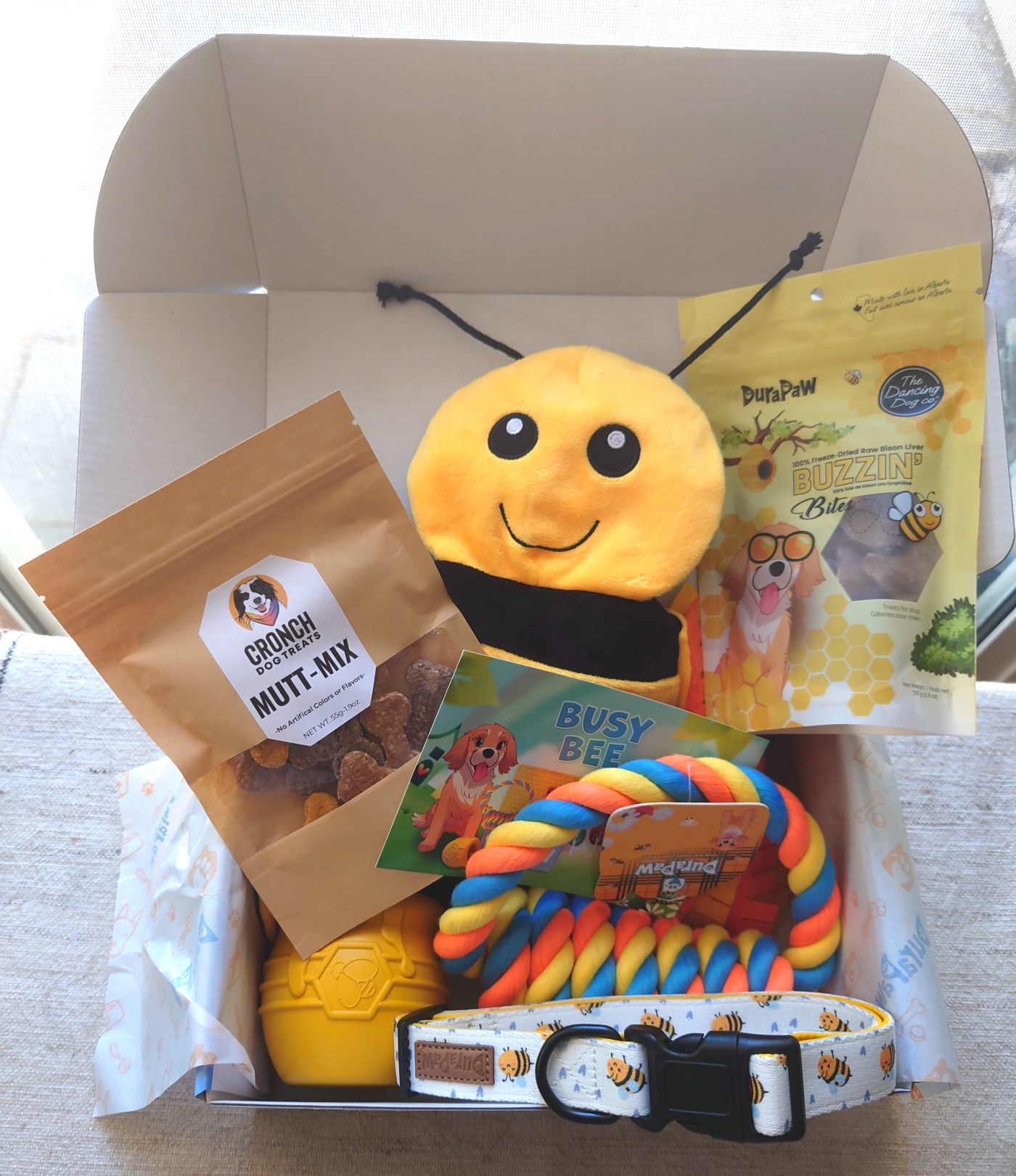 “The DuraPaw Ultimate Enrichment Dog Subscription Box comes loaded with 3 to 4 durable enrichment toys, 1 bag of delicious Canadian-made treats, and a fun customized dog accessory.”