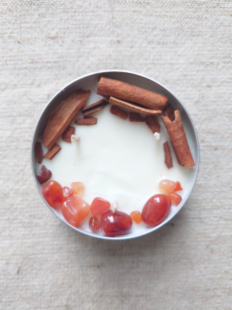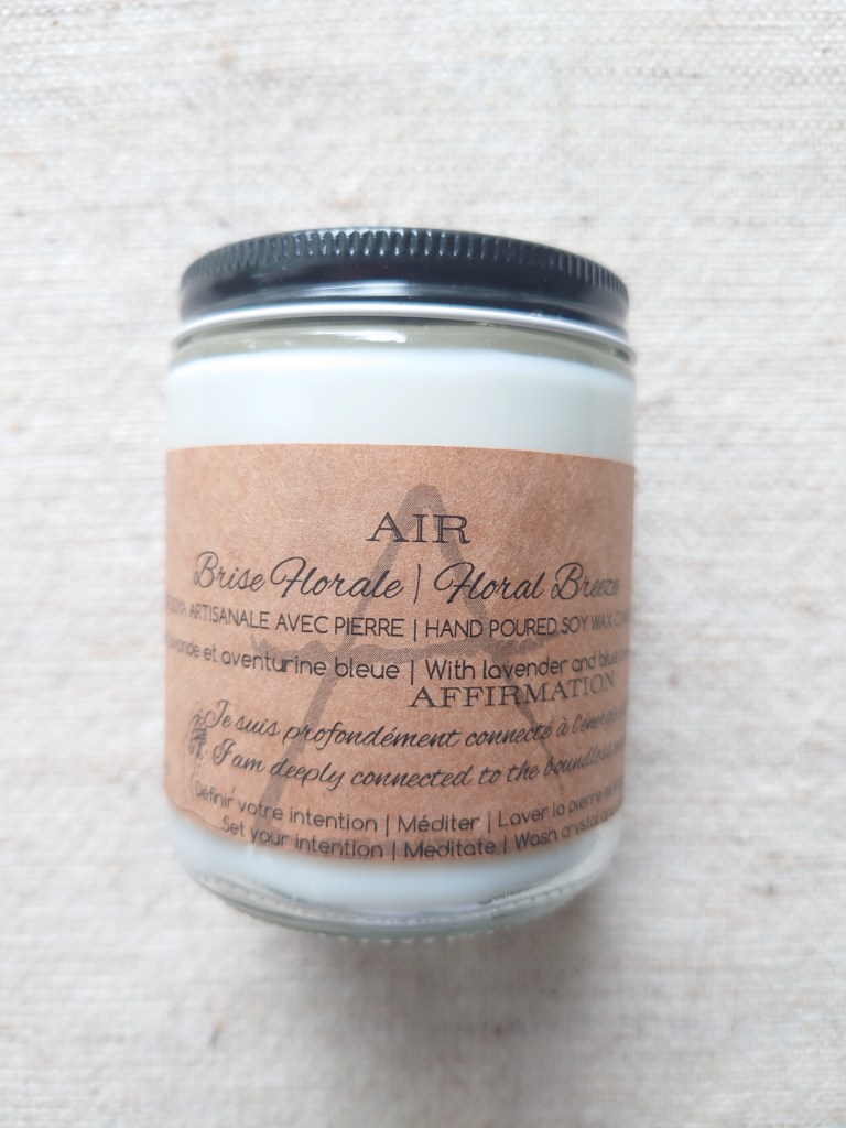 This is a very light-scented candle, going well with the theme of air. It contains lavender and blue aventurine.