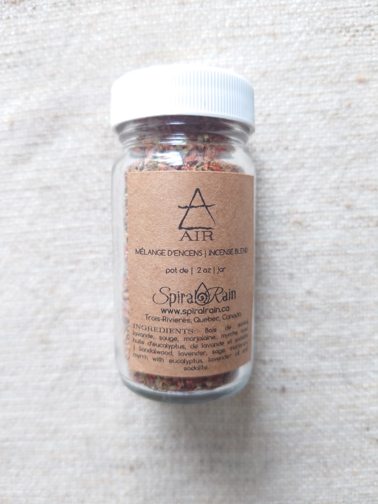 Similar, but not identical to the other air products this month, this incense blend contains sandalwood, lavender, sage, marjoram, myrrh, and eucalyptus.
