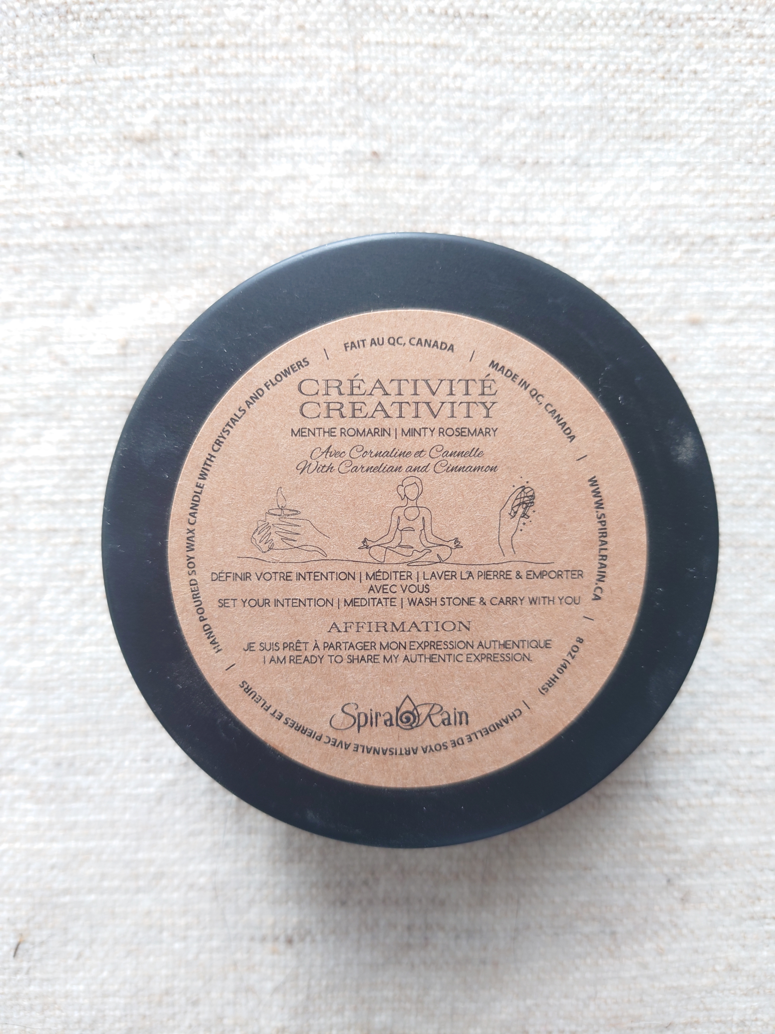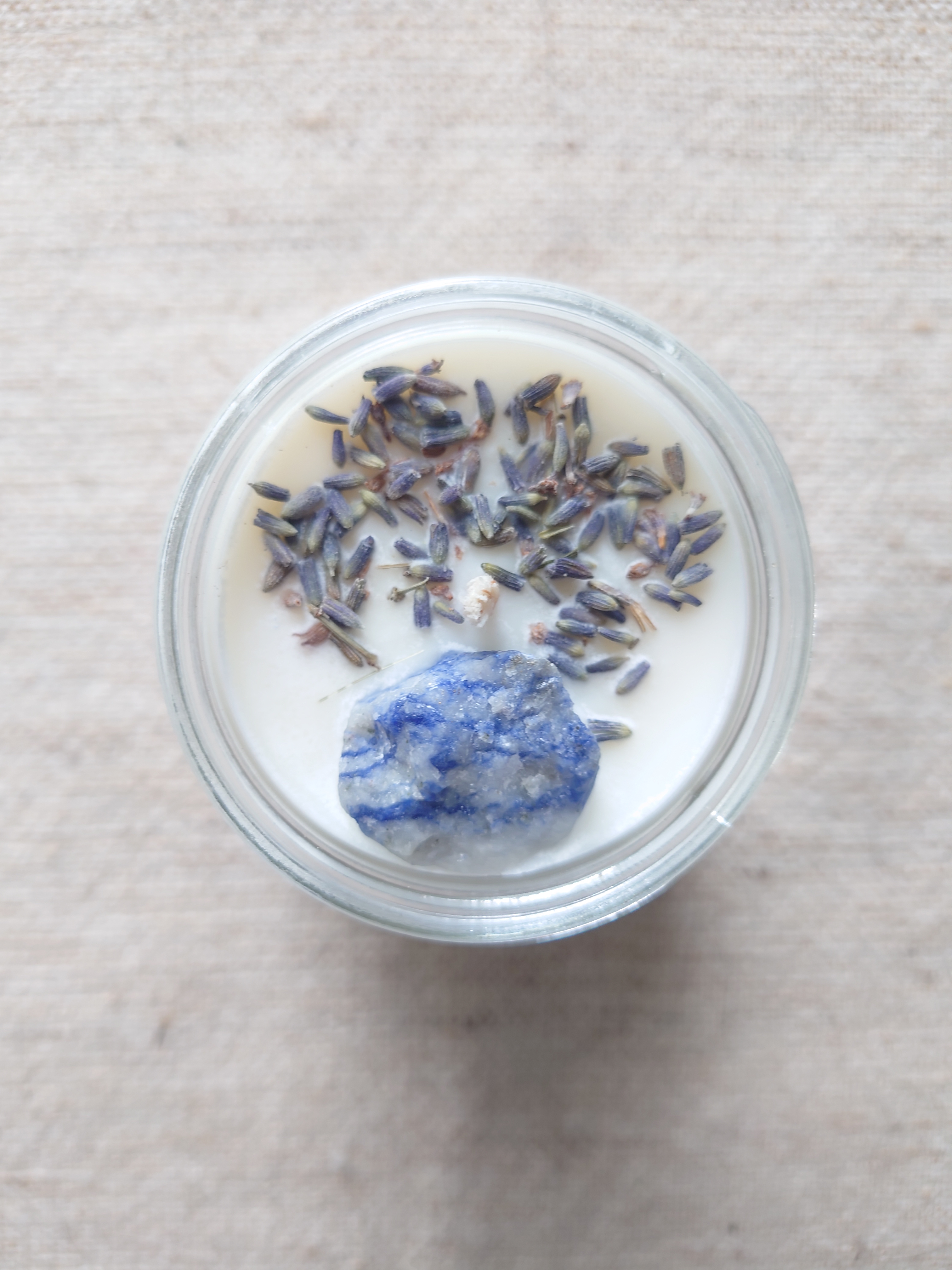 This is a very light-scented candle, going well with the theme of air. It contains lavender and blue aventurine.