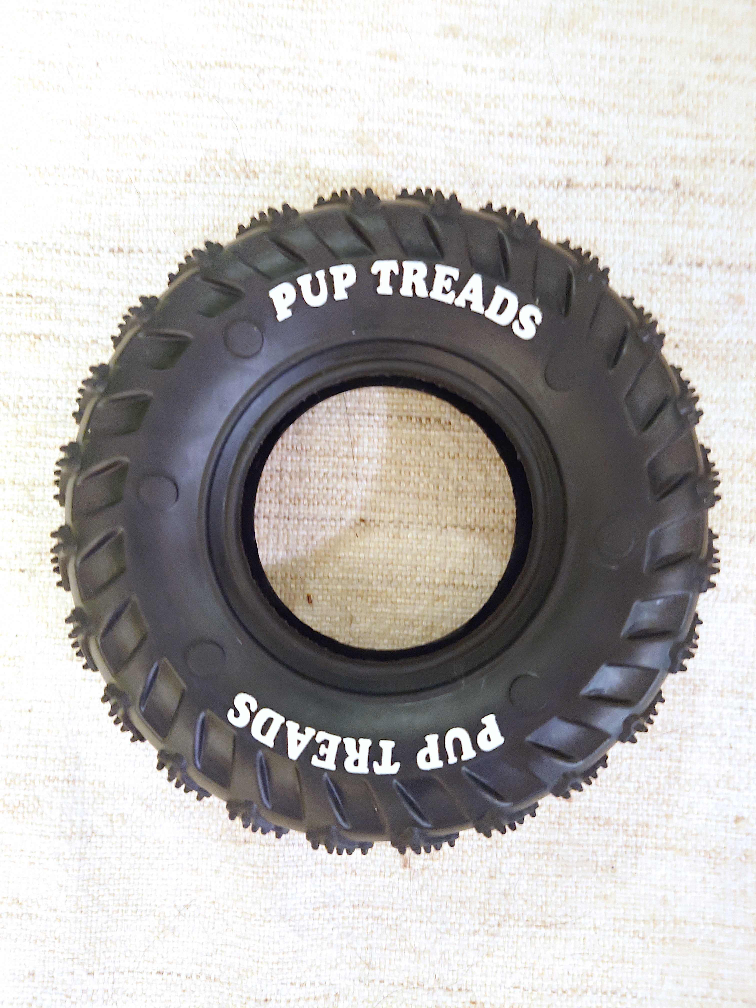 This is a fun box. I think treats are more valuable to me than toys, especially durable toys, because I already have a ton of them at this point. I like the tire the best as it’s something I can throw for the pups.