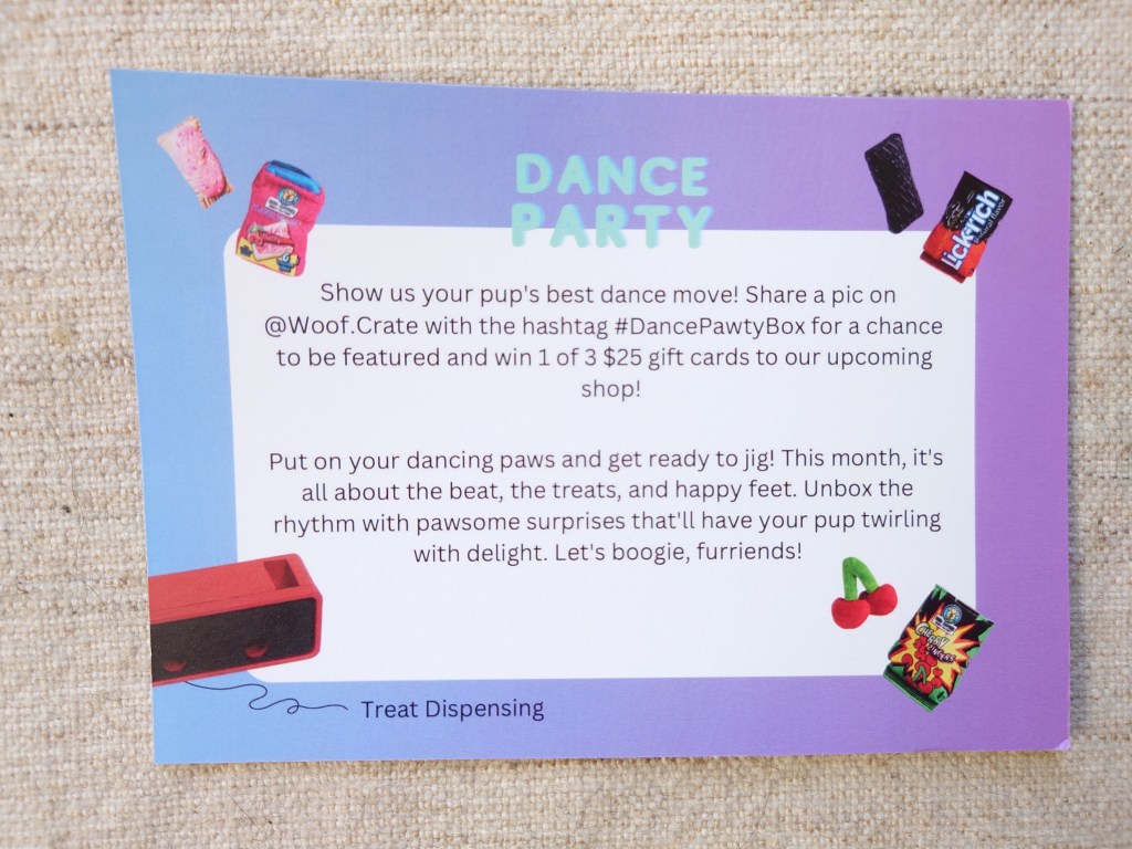 This month’s theme is a dance party! I’m a little late to the game, but there is another contest for a $25 gift card for the upcoming shop! You can join on Instagram with #DancePawtyBox. We won a gift card last month. Wahoo!