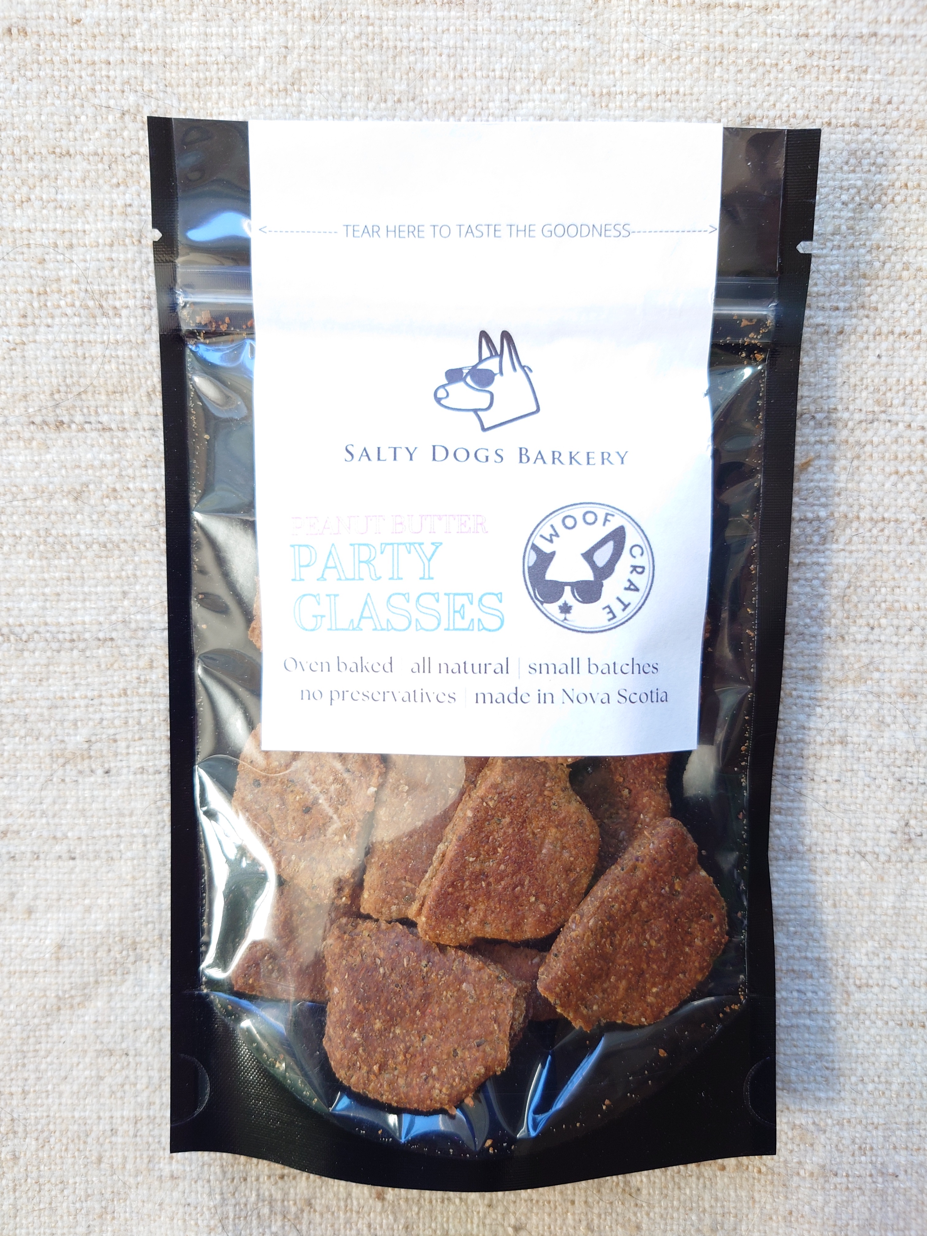 These are like the seaweed snack sunglasses that we got in the Fetch Co Summer 2023 box, but these ones are used for a party and not the sun. These ones are also made from peanut butter and not seaweed.