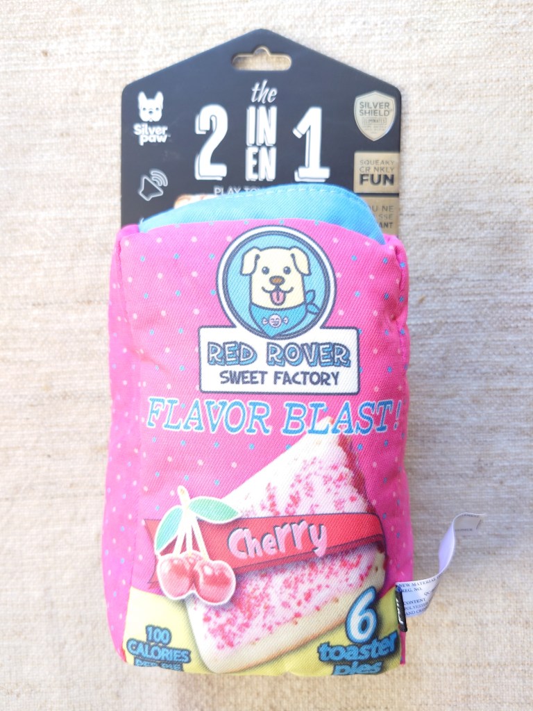 This is a 2-in-1 toy with a toaster pie inside. The details on this toy are great. Both the toaster pie and the package contain a squeaker.