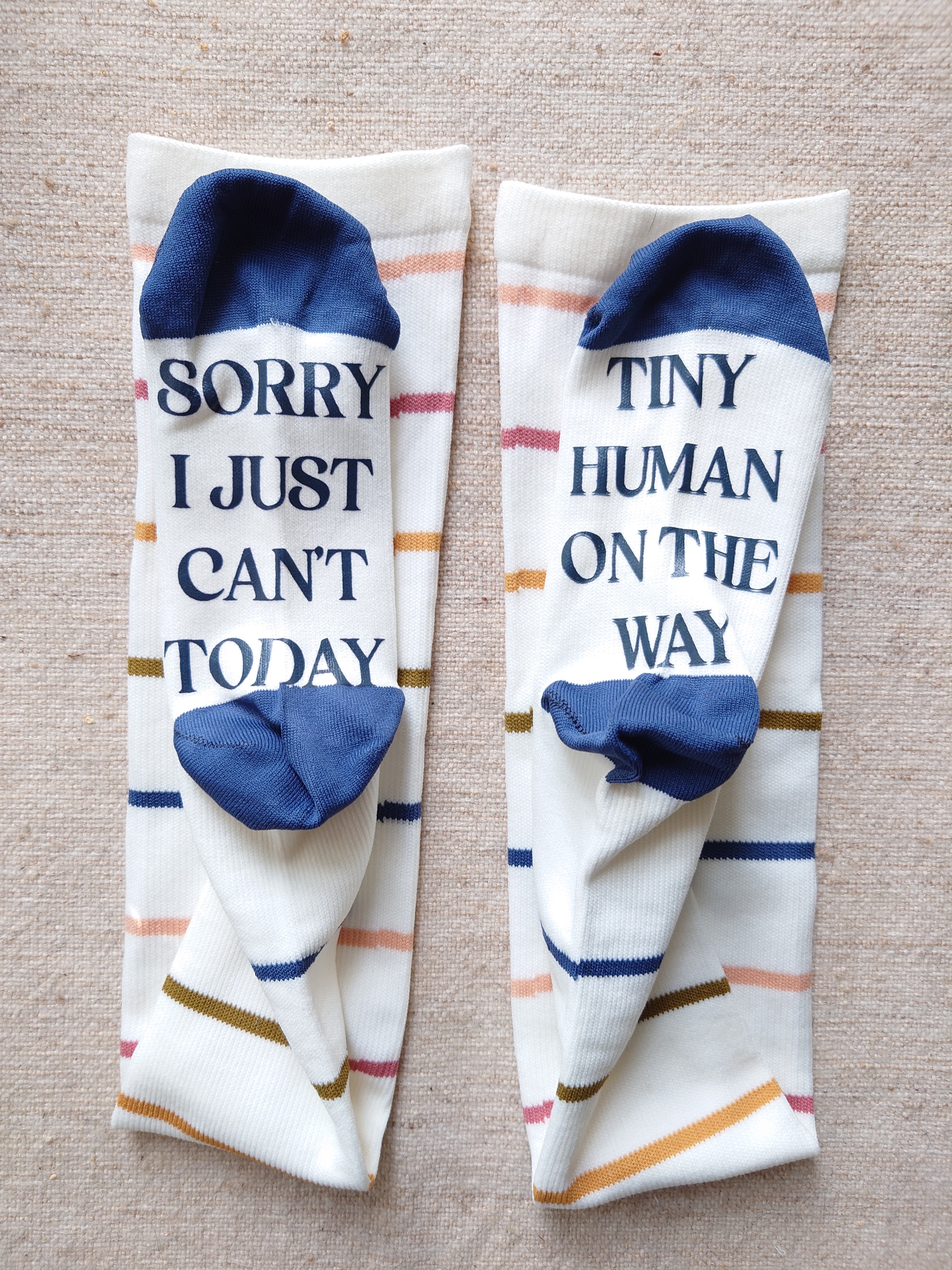 I like the colours of these socks. I don’t like the wording on the bottom. I’m hoping that the compression socks are comfortable and will not cut off my circulation.