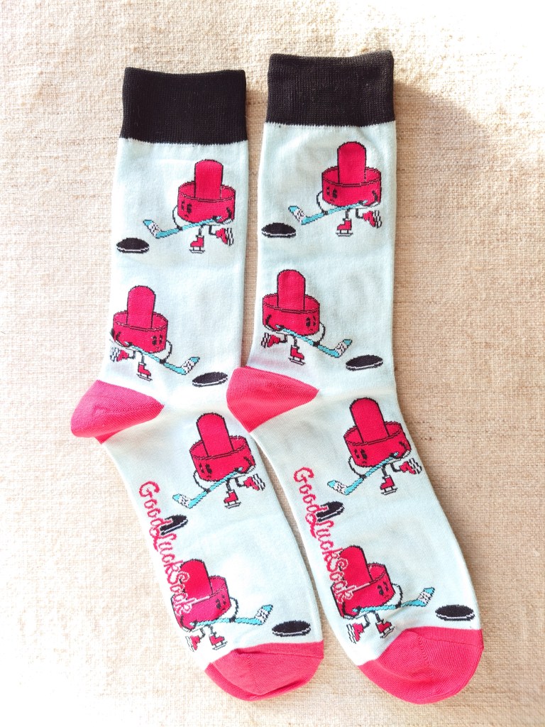 These King x Portland socks were designed in Toronto and made in China of 75% cotton, 23% nylon, and 2% spandex.