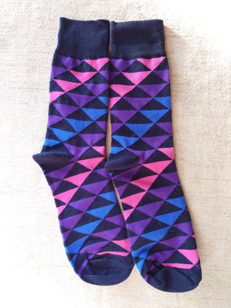 This is another duplicate pair from day 17 of the advent calendar last year. Luckily for Tony, these were his ultimate favourite from that calendar, so he’s pleased to have a second pair. These socks were designed in Canada and made in South Korea of 85% cotton, 10% polyester, and 5% spandex.