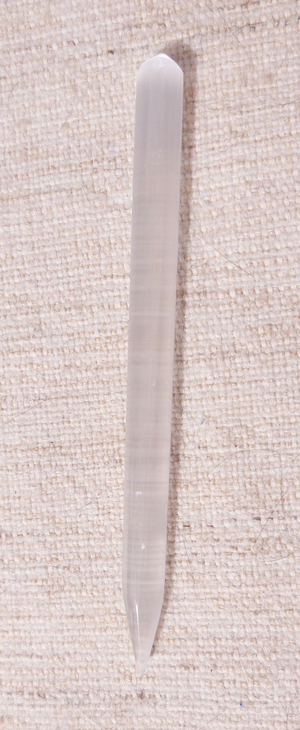 Selenite is a crystalized type of gypsum. This is a small, translucent wand.