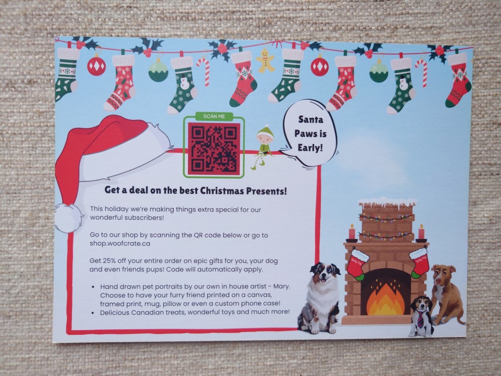 One can never go wrong with a bully stick, unless it’s one of those scentless ones. The dogs don’t like those ones, even if they’re much more bearable for the humans. The ones in Woof Crate are never the scentless ones, so the dogs are always pleased.
