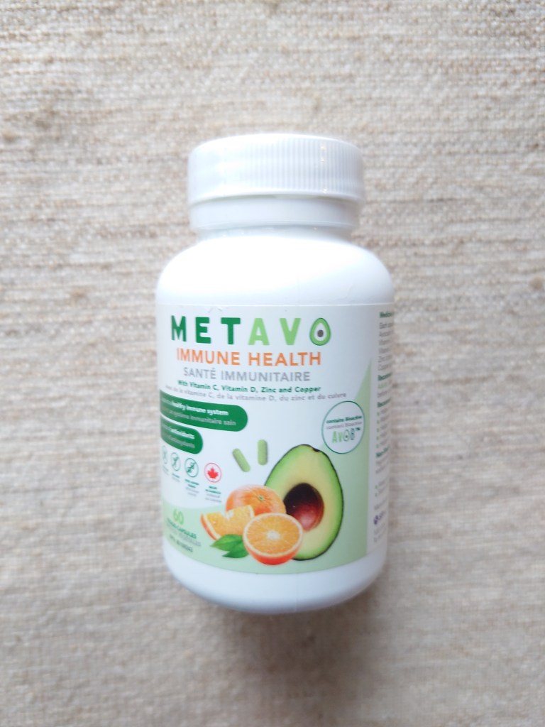 An immune-supporting supplement containing avocado, vitamin c, vitamin d, zinc, and copper. We still haven’t tried the other Metavo products, but right now is a good time to boost the immune system. So many viruses going around at the moment.