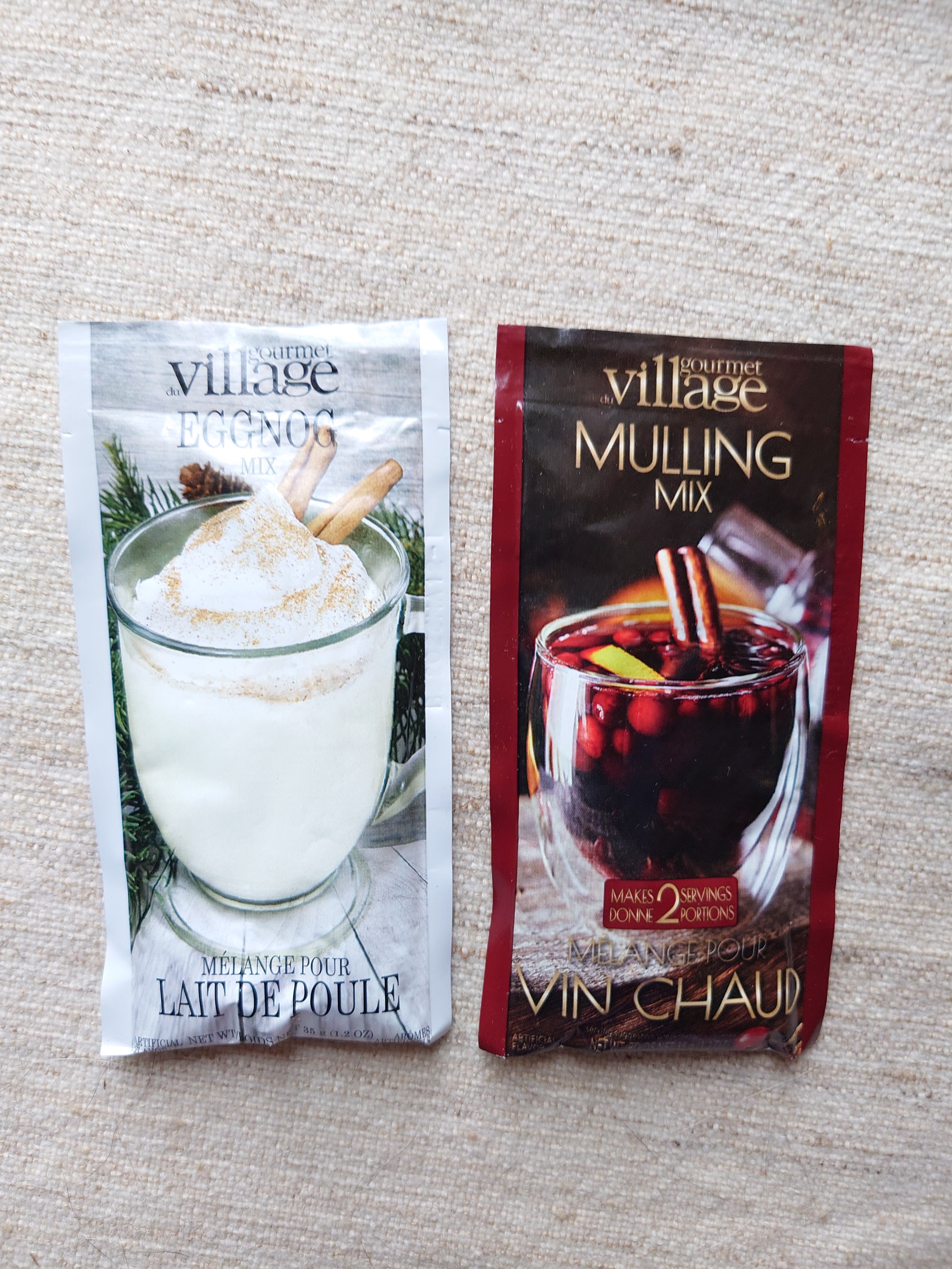 I think these were just thrown in for good measure as there is no information about them on the fact sheet. Gourmet du Village has lots of varieties of drink mixes, and the two we received happen to be for eggnog and a mulling mix. They don’t expire until 2026, so we’ve got time!