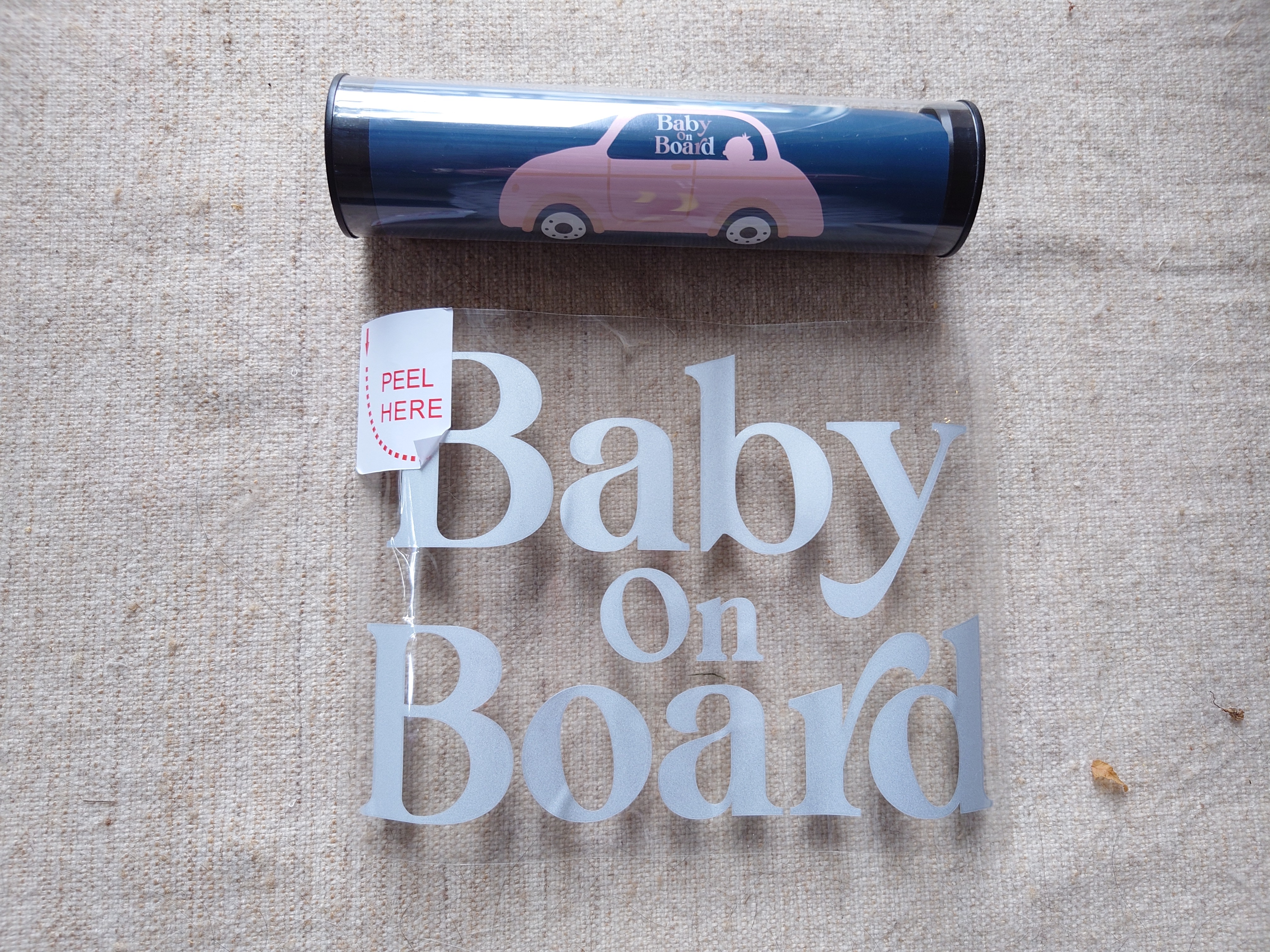 Sadly this vinyl decal isn’t as cute as the container would suggest. It is also very large and will not be used on either of our vehicles.