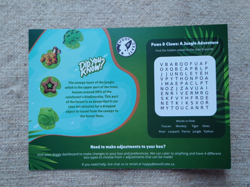 I like the jungle theme and the addition of the word search. It’s random, but there you have it.