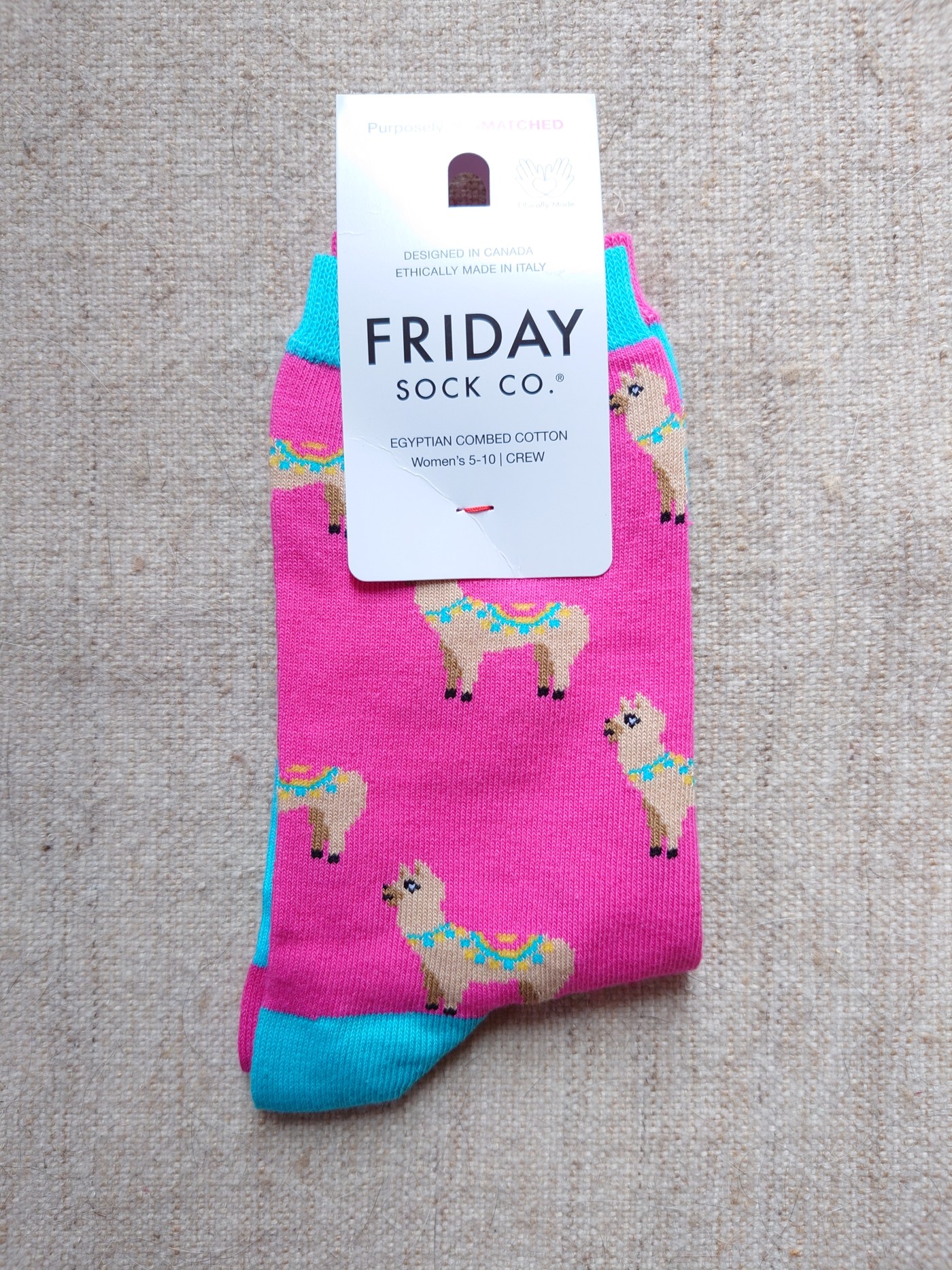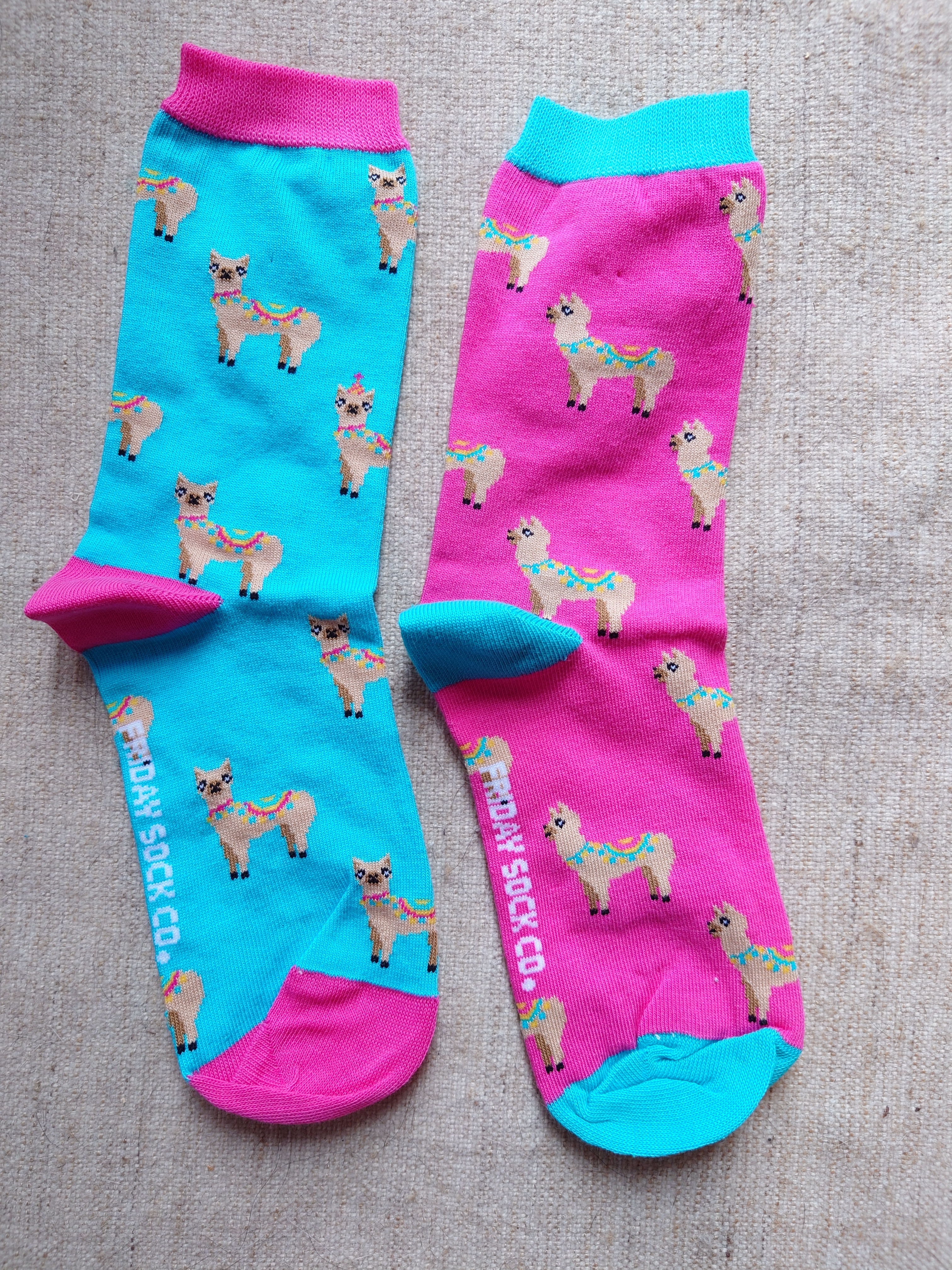 March’s socks for women feature llamas! These are some of my favourite socks. I love the llamas, and I love the colours of the socks.