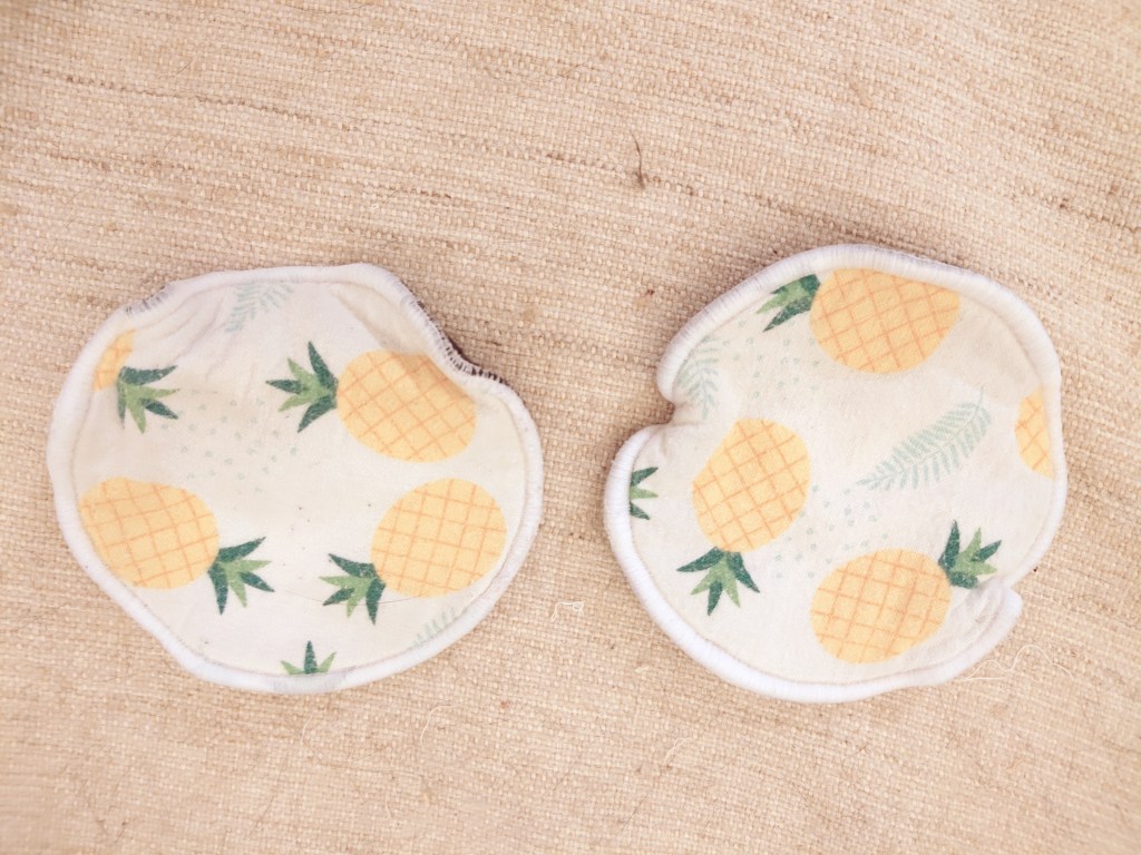 These are by far my least favourite nursing pads. They are thick and bulky, and the fabric tends to to stick to my nipples. I’m embarrassed to say that it wasn’t immediately clear to me which side was supposed to face out and I made the mistake of putting the soft fleece (microfiber) against my nipples. That was a painful error. Despite having 3 layers of cotton, they don’t seem to absorb all that well and left me feeling quite wet. Though touted as washer and dryer friendly, they lost their shape with the first wash and dry and have made themselves the least discrete pair of nursing pads that I own. At $8/pair I do not recommend these at all.