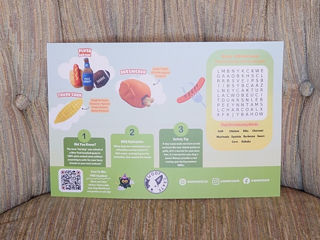 Not my favourite theme, but getting three toys in one box was a delight. I didn’t even make the dogs wait this time. I still have a mountain of brand-new toys that haven’t been touched yet and tons of used toys everywhere. I am considering cancelling my subscription just because I have too many, but the dogs love it when their box arrives each month, and I like discovering the monthly themes. I’m a conflicted consumer. Le sigh.