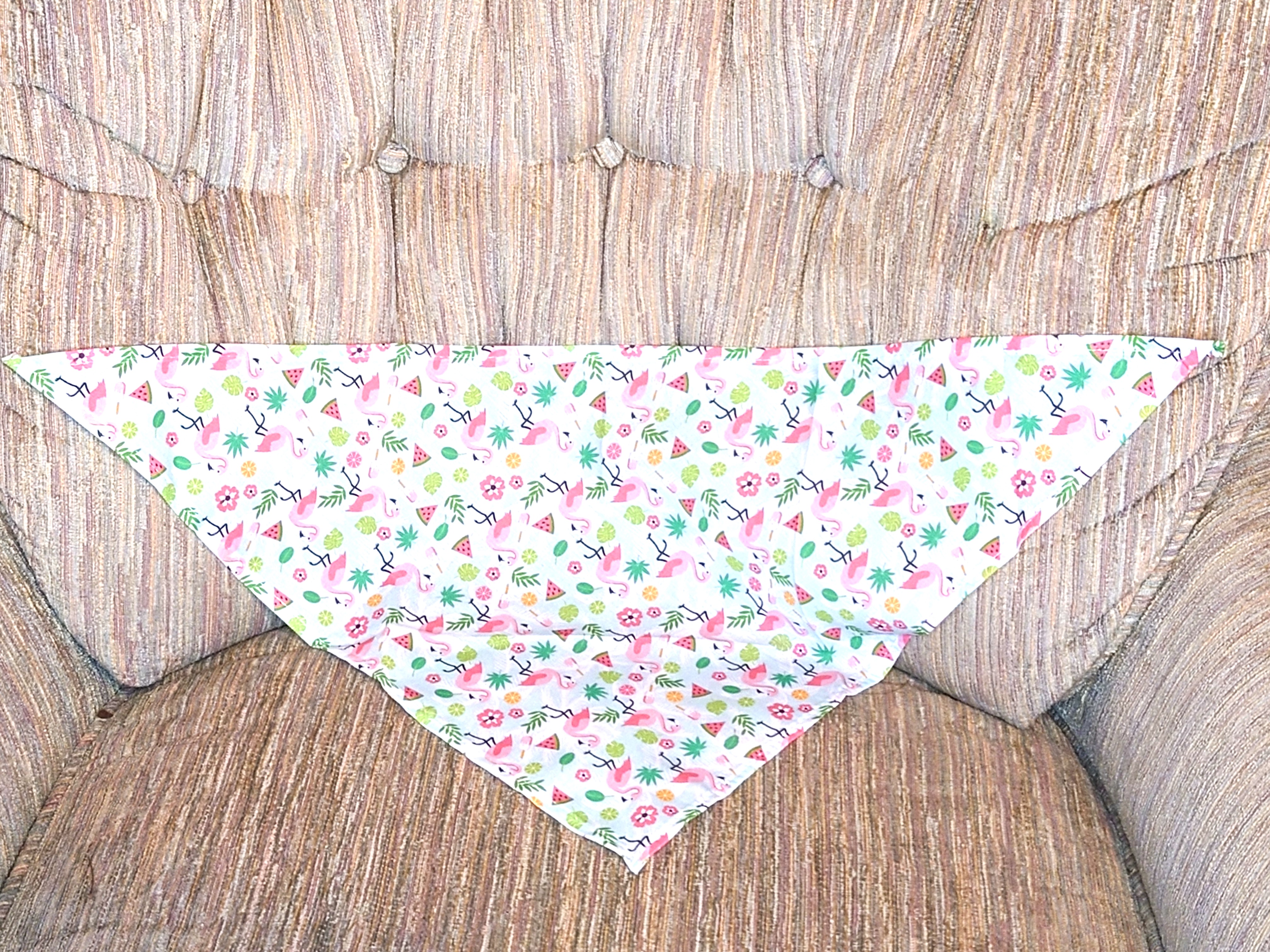 A nice summer-themed bandana. If we ever go to a summer-themed party this winter, we’ll dress up the pups in these.
