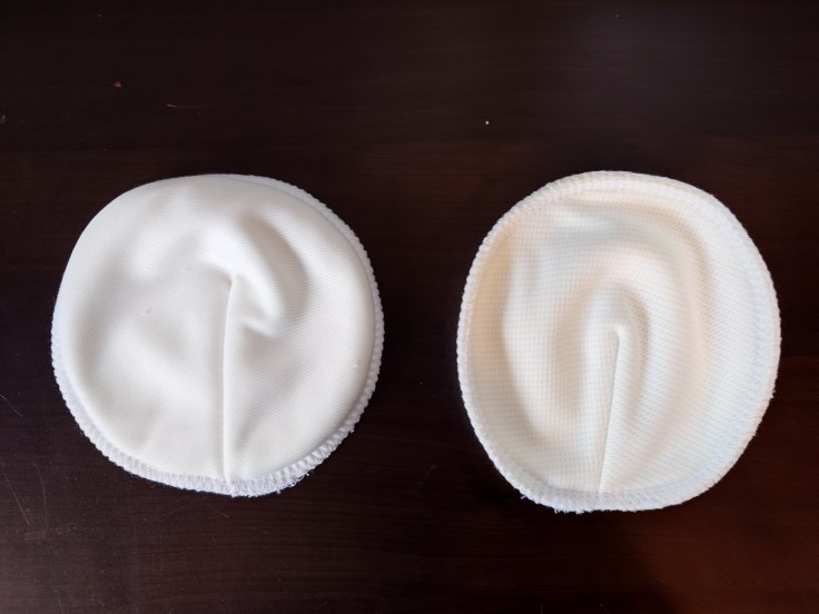 I recommend these if you’re not fussy about using synthetic materials and you have the budget for them. You would need at least two packs if you’re washing them every day, and they easily go in the washer and dryer. I only ever washed them in warm water with the rest of my clothing, so sometimes they retained a smell, but it is recommended to wash them in hot water. Also, as with every other nursing pad that I’ve tried, they are absolutely not discrete, and companies should really stop advertising that. The only thing they’re being discrete about is when you’re leaking milk.