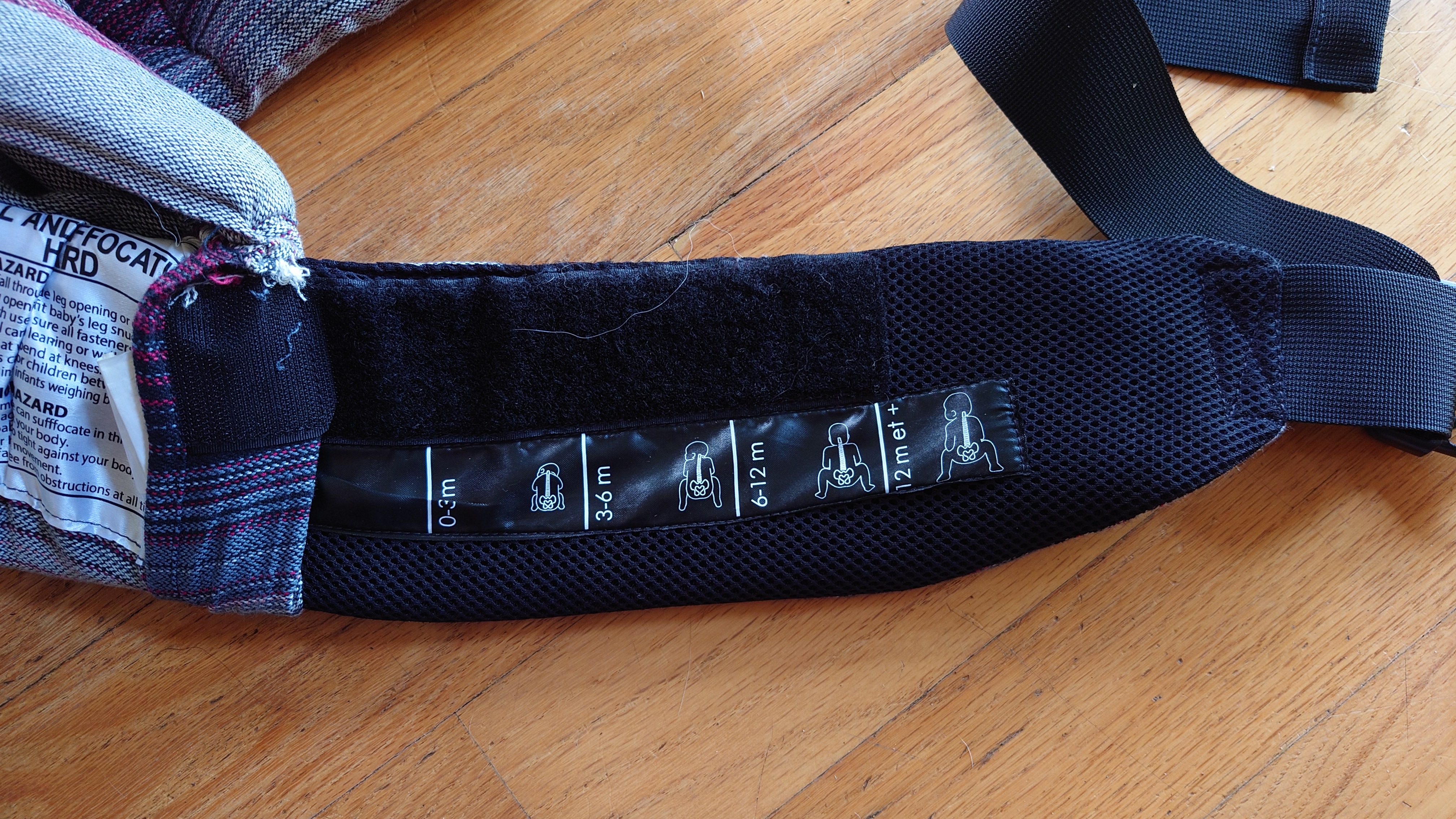 Waistband: The waistband is sturdy and comfortable. The velcro is moderately thick and placed near the top of the waistband, which helps to keep it from collapsing. I have used this carrier a lot, and the velcro has never shifted during wear. When the velcro is attached in the correct spot, the fabric also stays in place and doesn’t twist around the waistband.