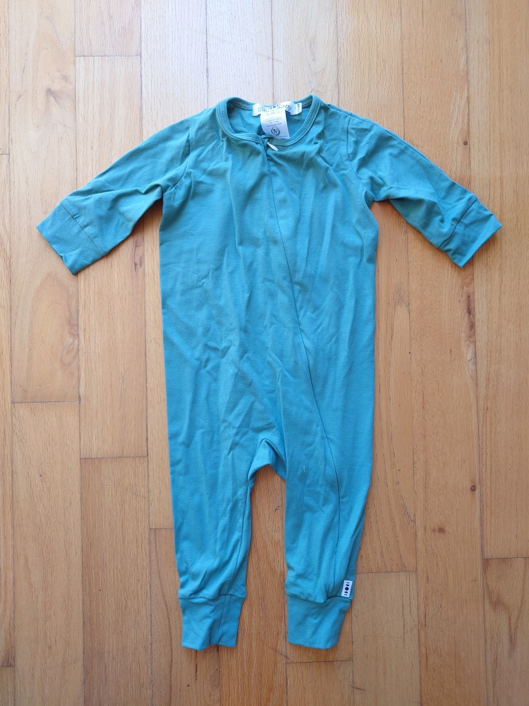 I like deals and not paying full price, so I got a factory second of Everett because it was only $20, and how bad could it be, really? It’s a 12-24 month size, and despite my child being 15 months now, he is small and still hasn’t worn it.
