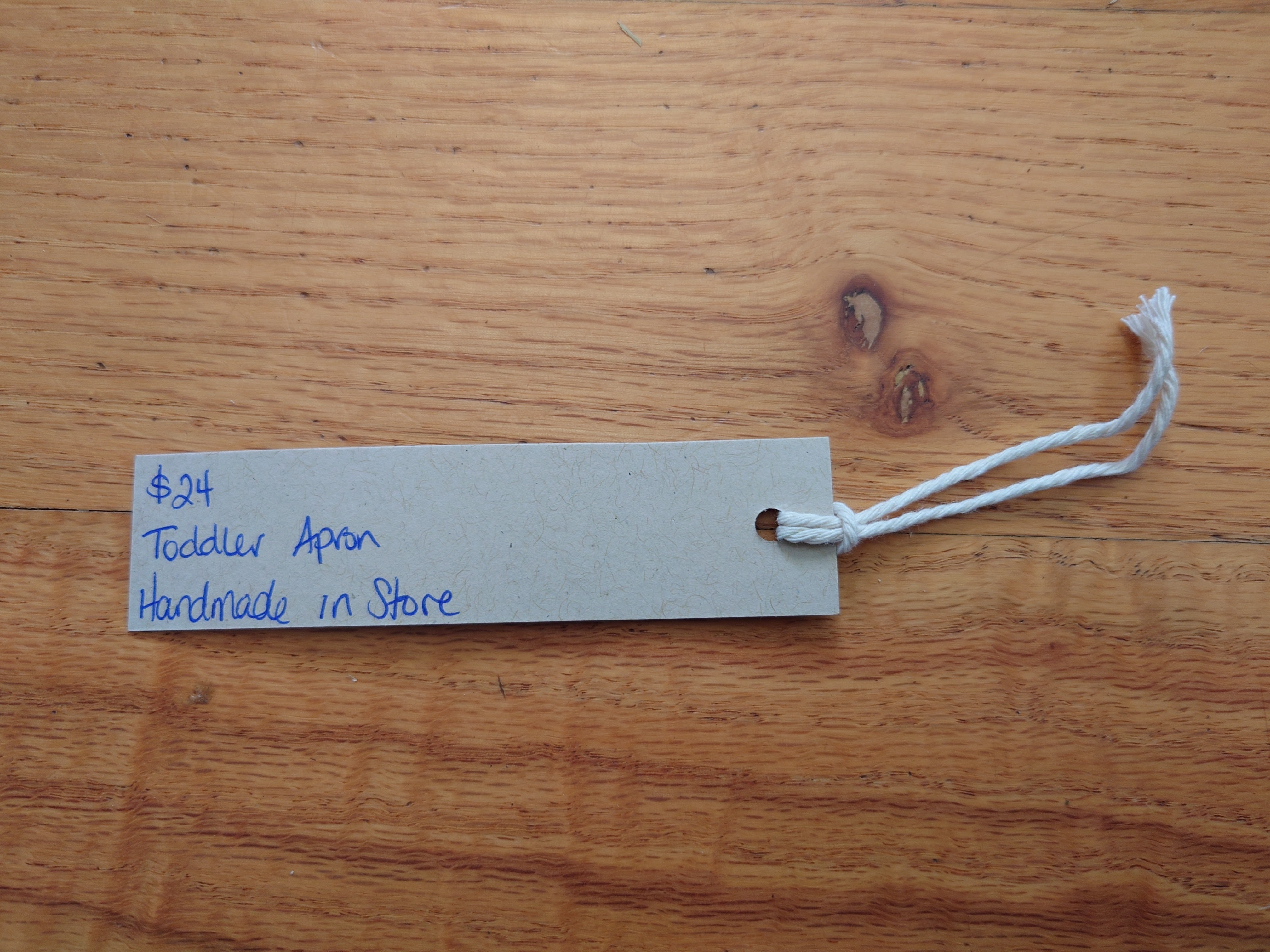 My toddler has taken interest in helping out around the house, and I am happy to foster that interest. Because he is a toddler, he tends to make a mess, so an apron is a good thing to have on hand for him. I am particularly drawn to foxes, so I could not resist getting him this particular apron. The fact that it was handmade in store is an awesome bonus.