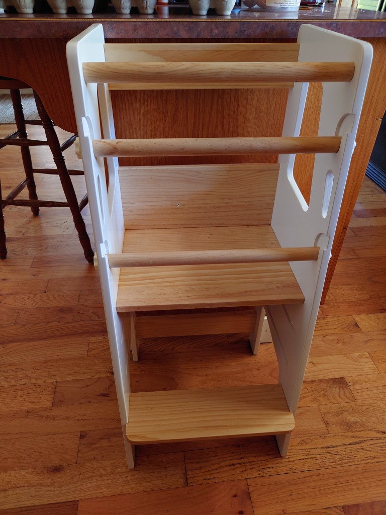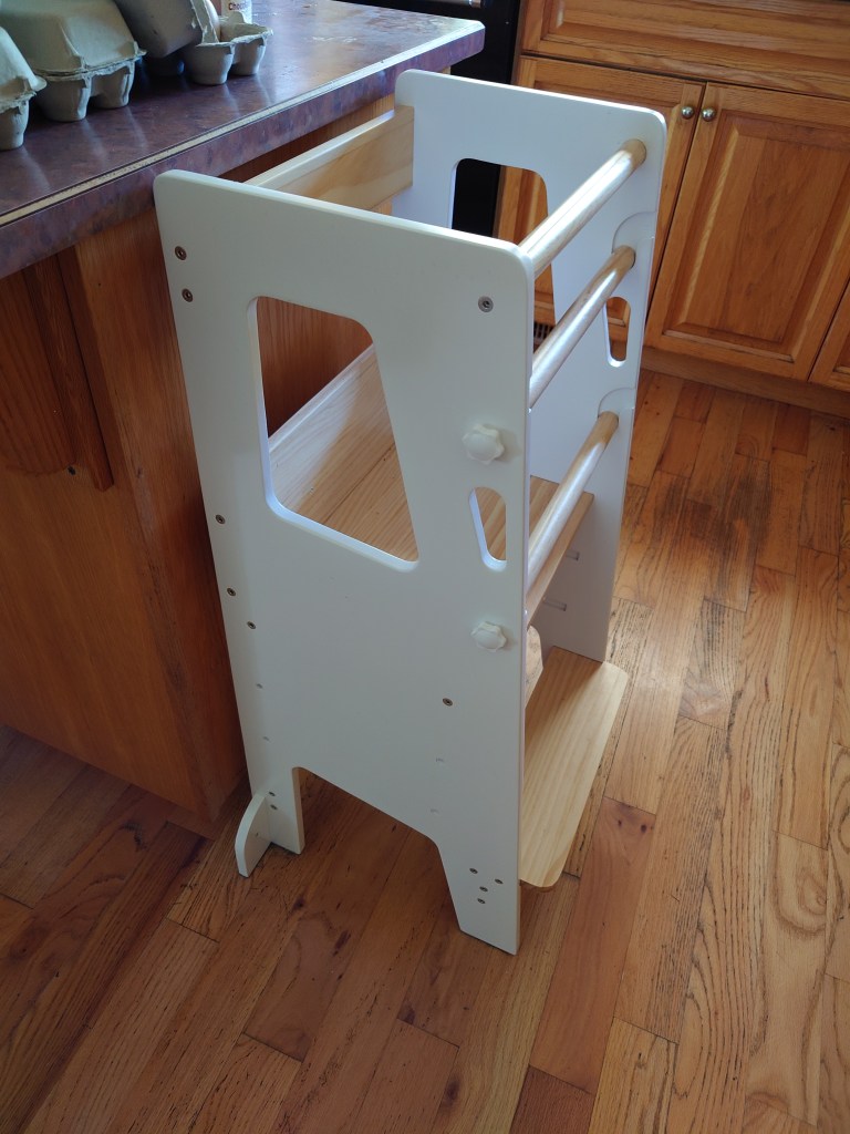 There are a lot of learning towers out there. So many different types: some foldable, some handmade, some janky Ikea hacks I’ve seen on Marketplace. I eventually settled on Little Treasures. I had been seeing their ads for months, and after a fair amount of research I decided they were the best option for us.