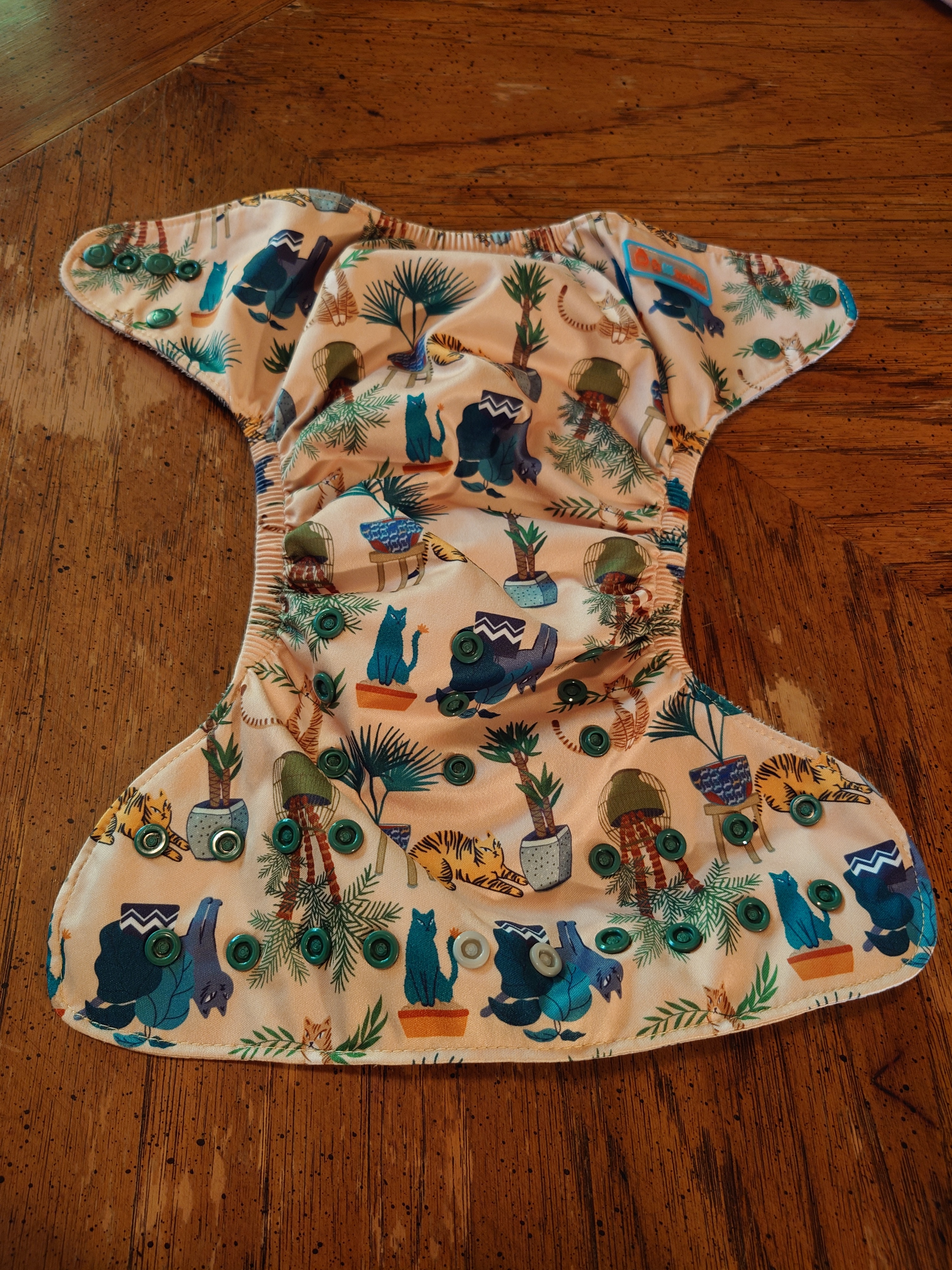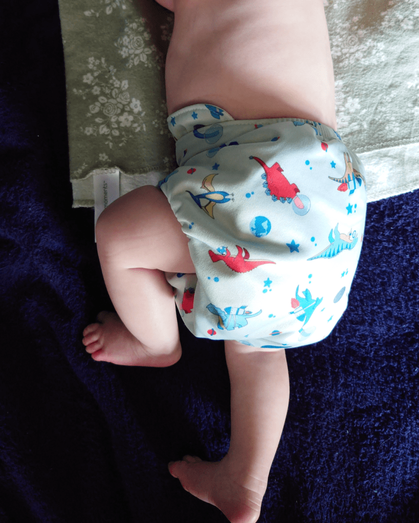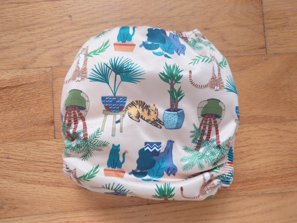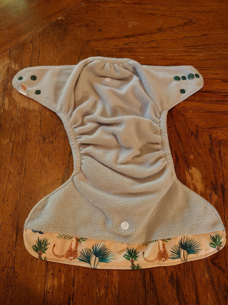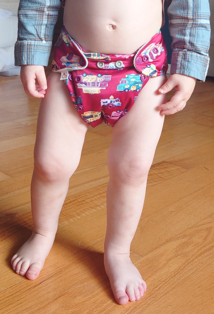 Keep in mind that my 20-month old baby is in like the fifth percentile. He is a small baby, and this diaper has no more snaps to undo. It is supposed to fit up to 35lbs, or when the baby is potty trained. My baby is short and only 23lbs at 20 months, so I’m not quite sure how they will keep fitting. I already don’t like how bulky they are, but they also retain the stench from excretion more easily than other diapers we have.