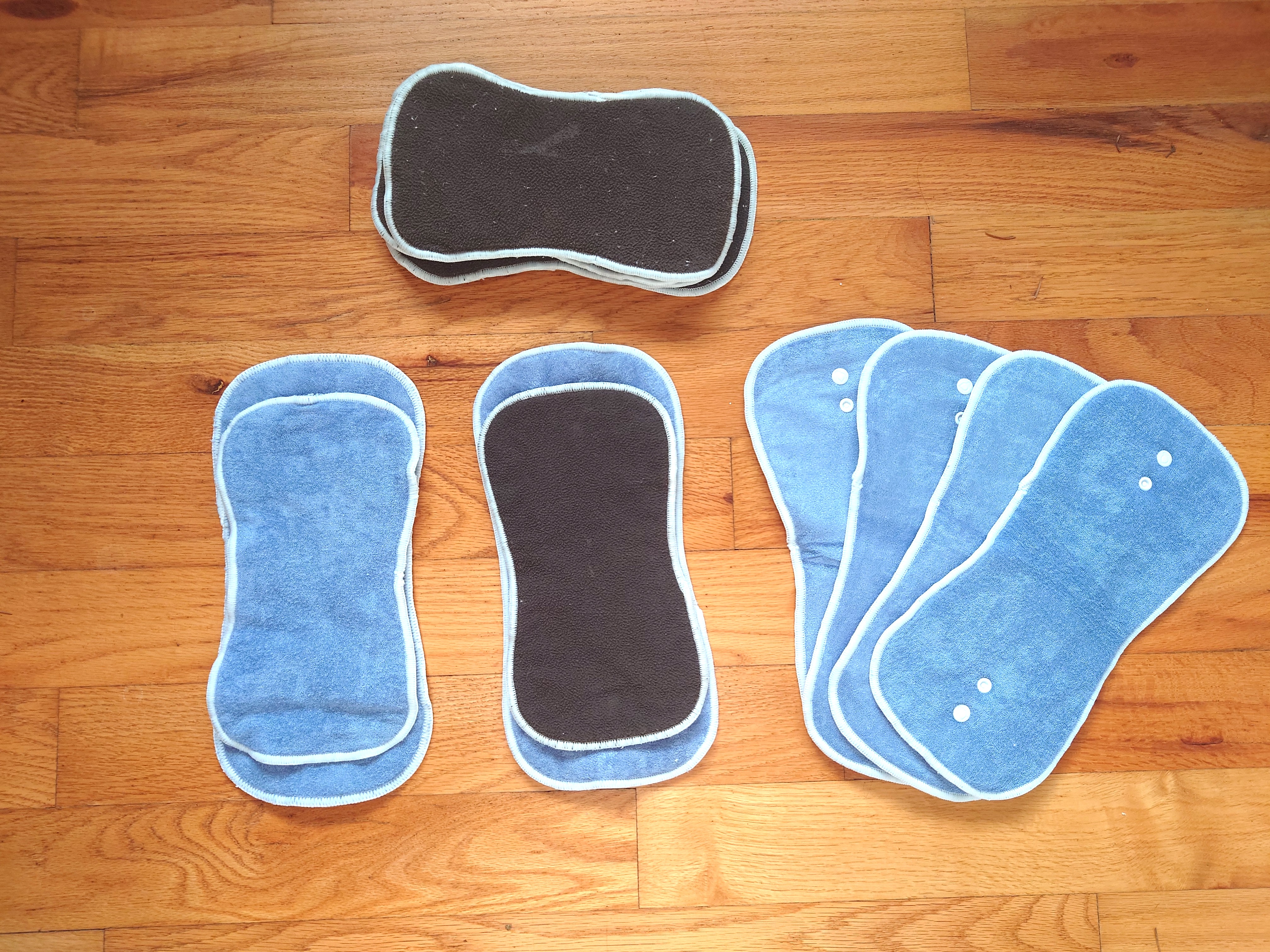 Despite our issues in the beginning, these got used fairly frequently when our son was small. When I built up a large enough cloth diaper stash, these got stuffed into the emergency corner for the very rare moment we run out of diapers.