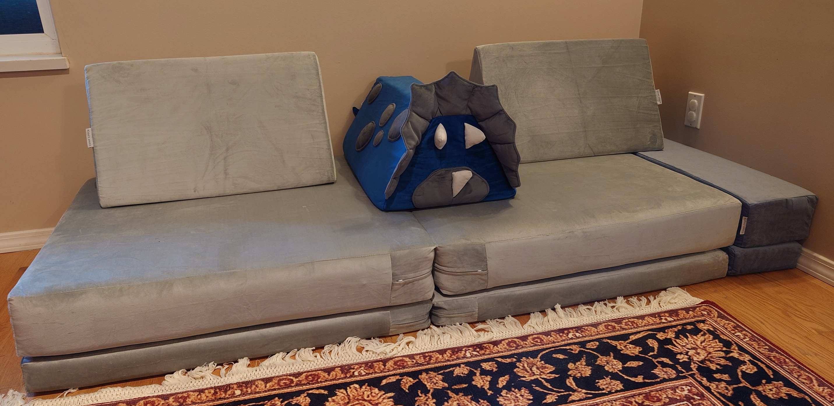 When looking at the Cushy Couch, I noticed these critter cushions and thought my son would love one. Though relatively expensive, I got a $30 discount by bundling one with the couch. I chose the triceratops because I once had a very special puppy named Triceratops (Cera) that jumped the fence and got hit by a car in 2020.