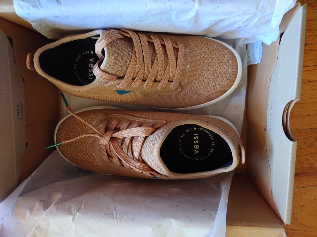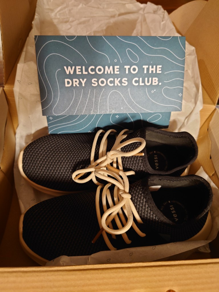 My new pair of Vessis, though waterproof, and nicer looking than my first pair, are nowhere near as comfortable. I’ve been wearing them for three months now, and they should be well broken in, but if I wear a thicker pair of socks, or if I have swelling in my feet, they get uncomfortably tight, especially on the right foot. I also went for a 6.5 kilometer walk in these a week ago and I was in pain by the end of it. I had the beginnings of blisters on both feet, especially on the soles and heels, which I never had with my first pair, despite the multiple times I took them for 10+km walks. All that to say I still don’t know how I feel about the company or the shoes. There you have my unhelpful review.